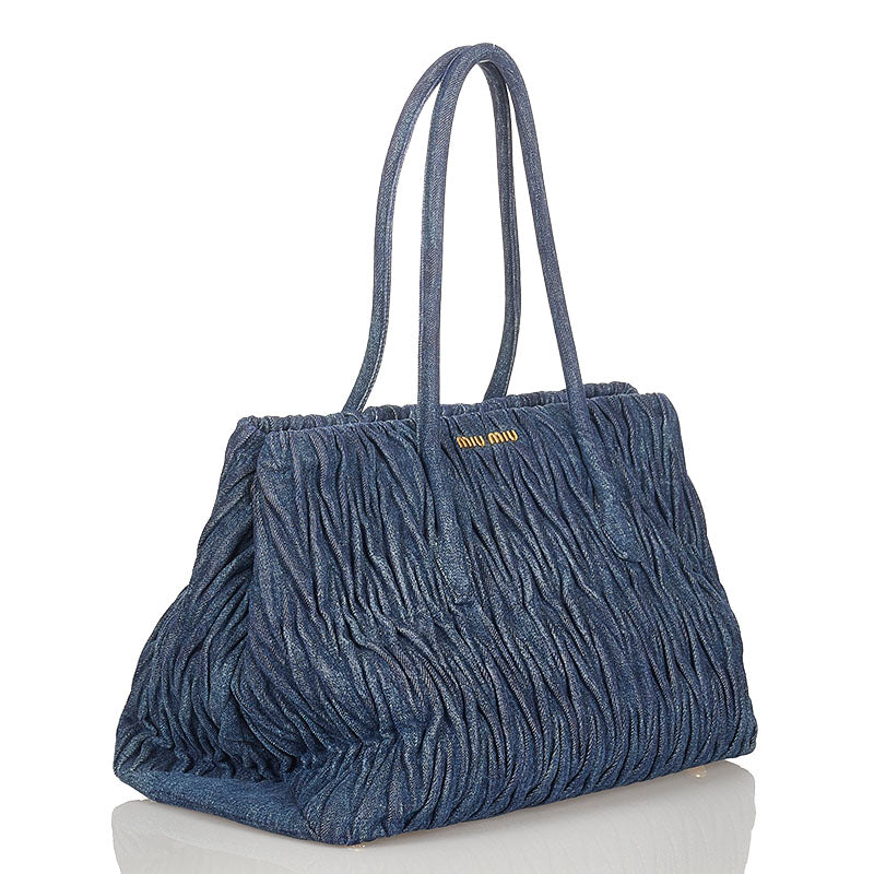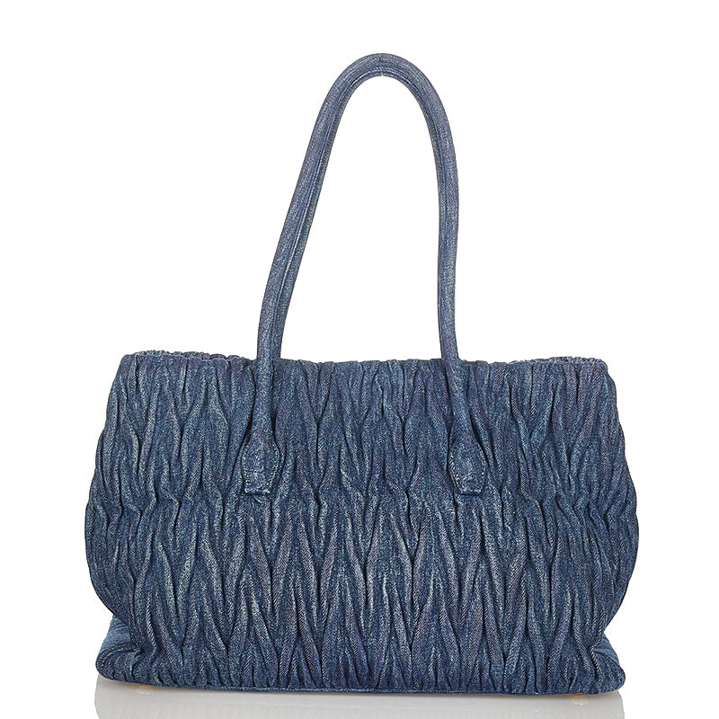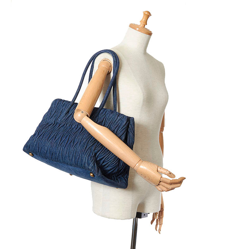 ミュウミュウ マテラッセ ブルー デニム ショルダーバッグ トートバッグ レディース MIUMIU 【中古】