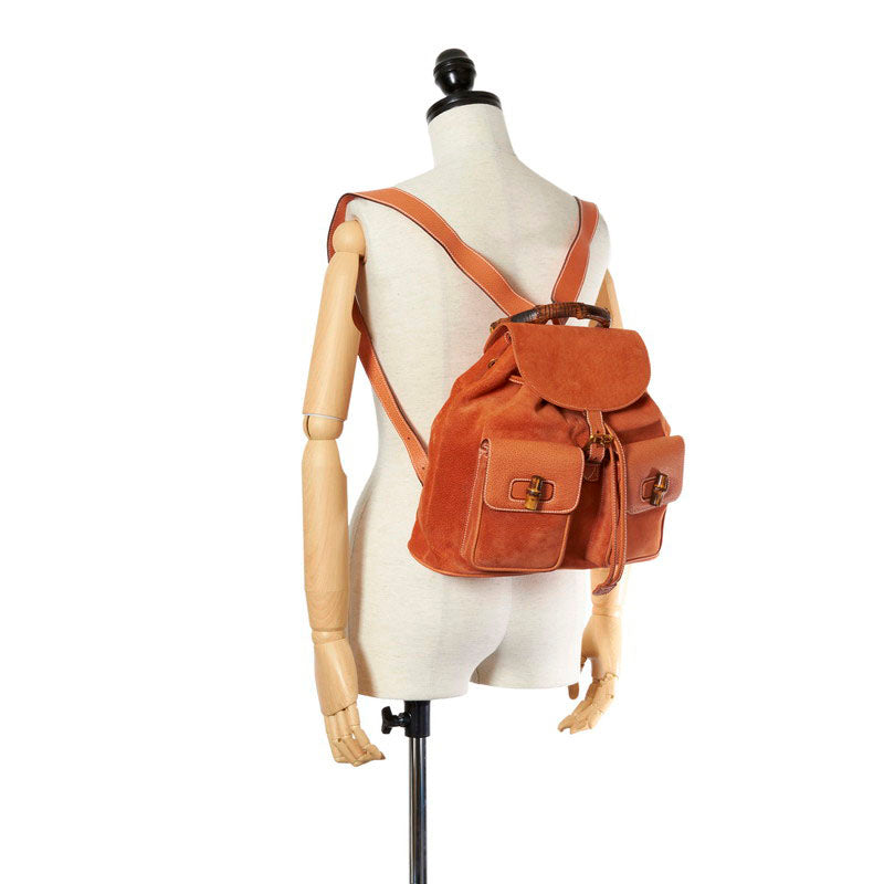 グッチ バンブー オレンジ スウェード レザー リュック バックパック レディース GUCCI 【中古】