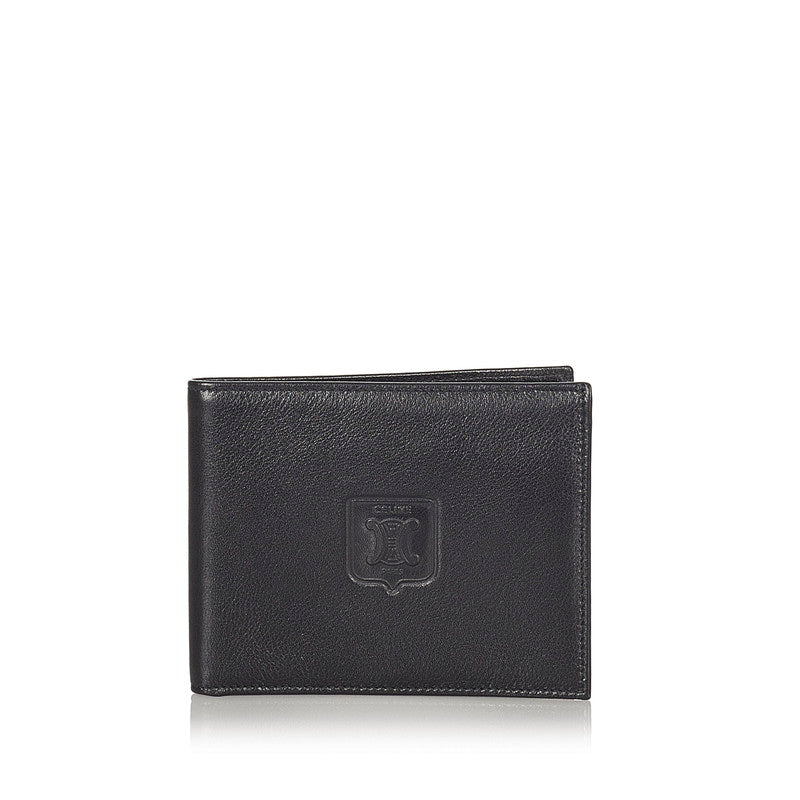 セリーヌ ブラック レザー 二つ折り財布 メンズ CELINE 【中古】
