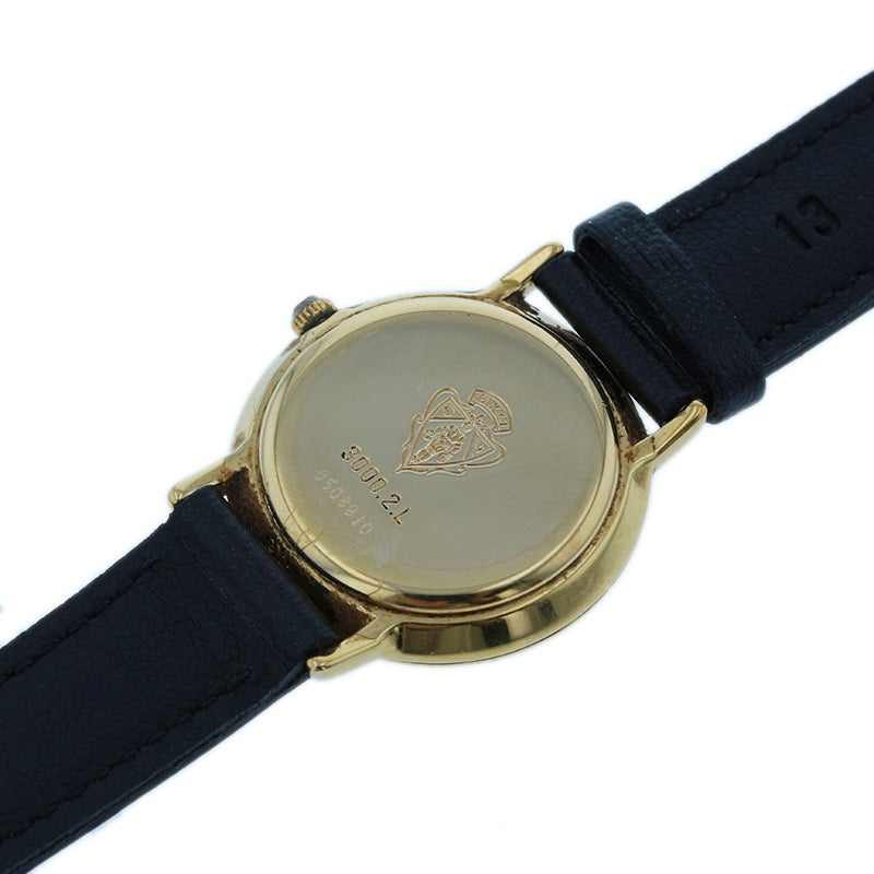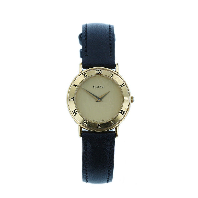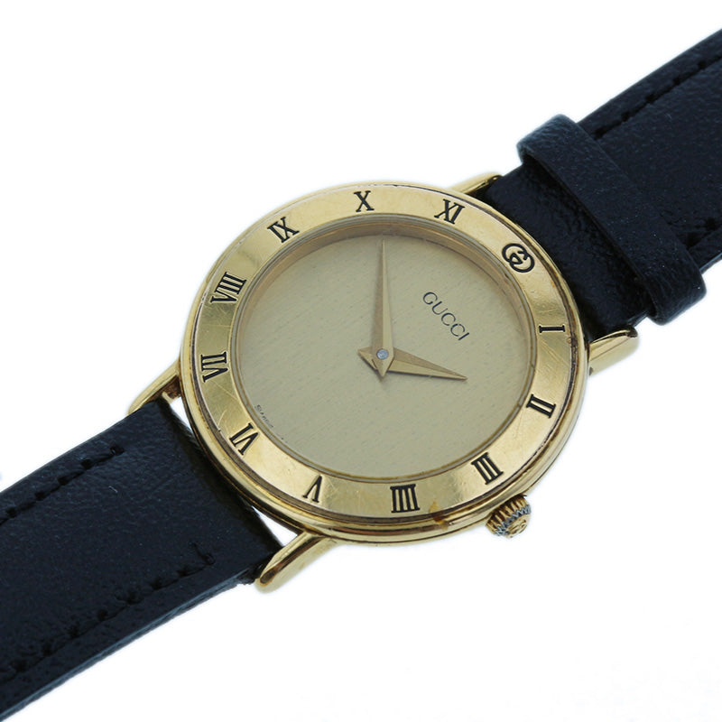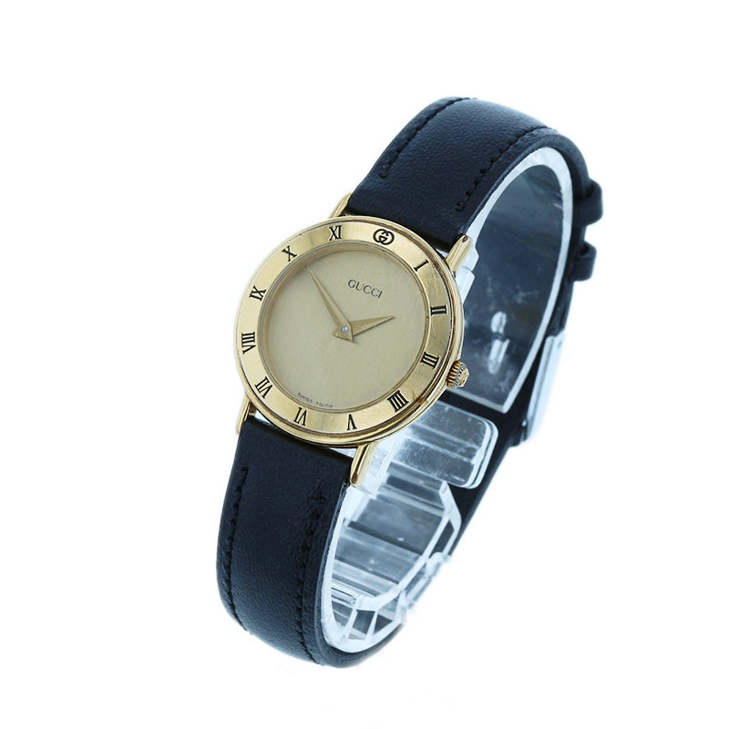 グッチ ローマン 3000.2.L ブラック レザー メッキ 腕時計 レディース GUCCI クオーツ ゴールド文字盤 【中古】