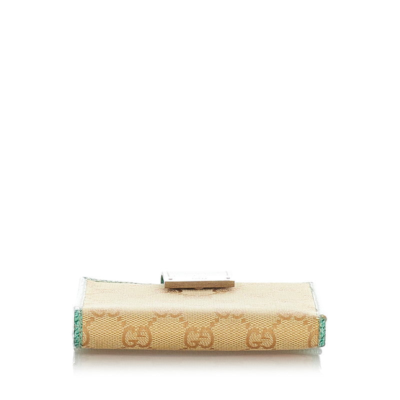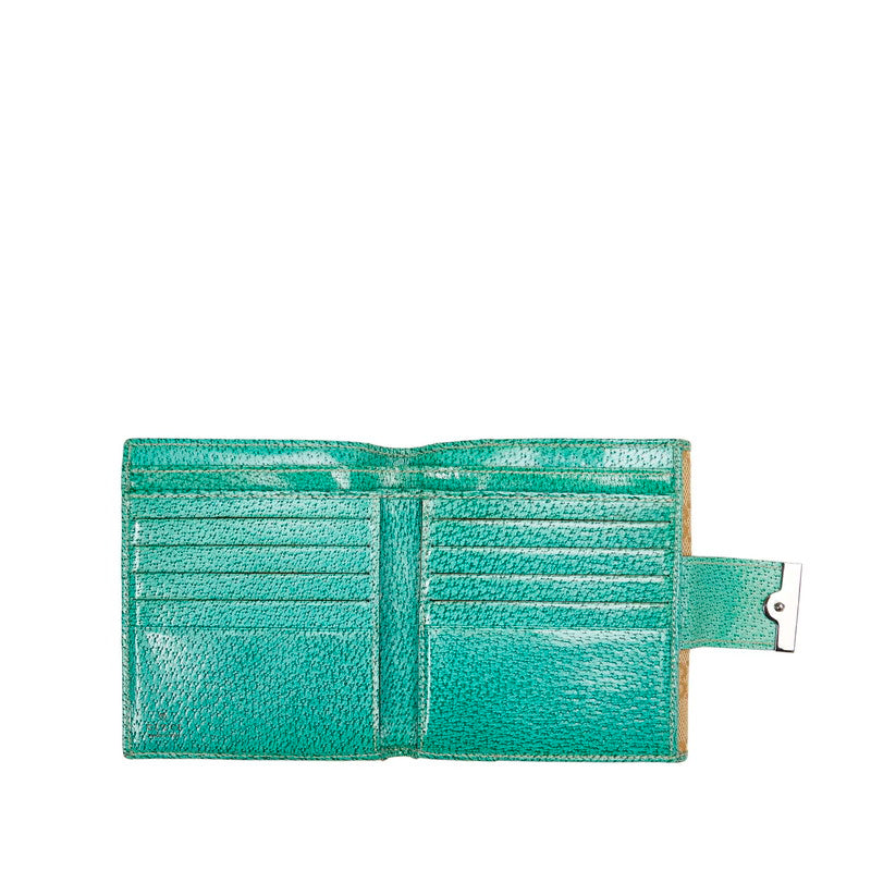 グッチ GGキャンバス 二つ折り財布 115090 ベージュ グリーン キャンバス レザー レディース GUCCI 【中古】