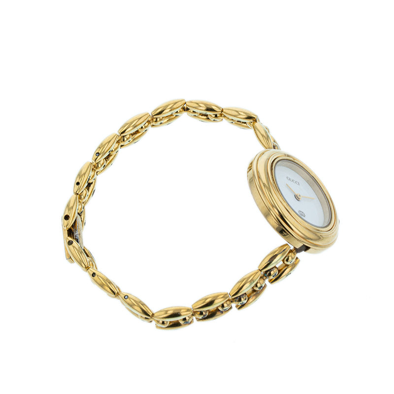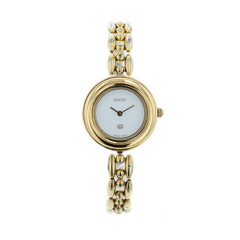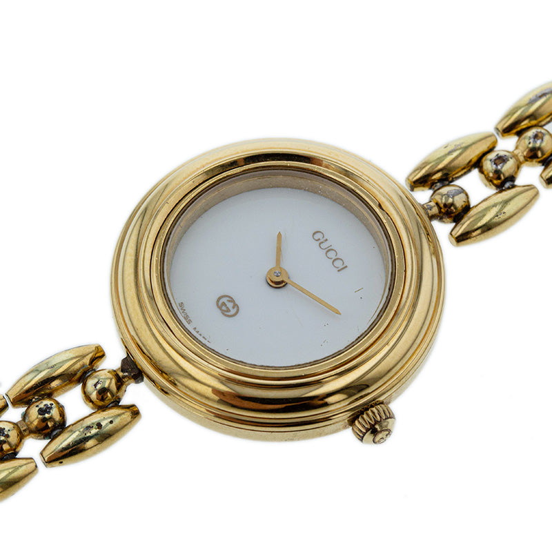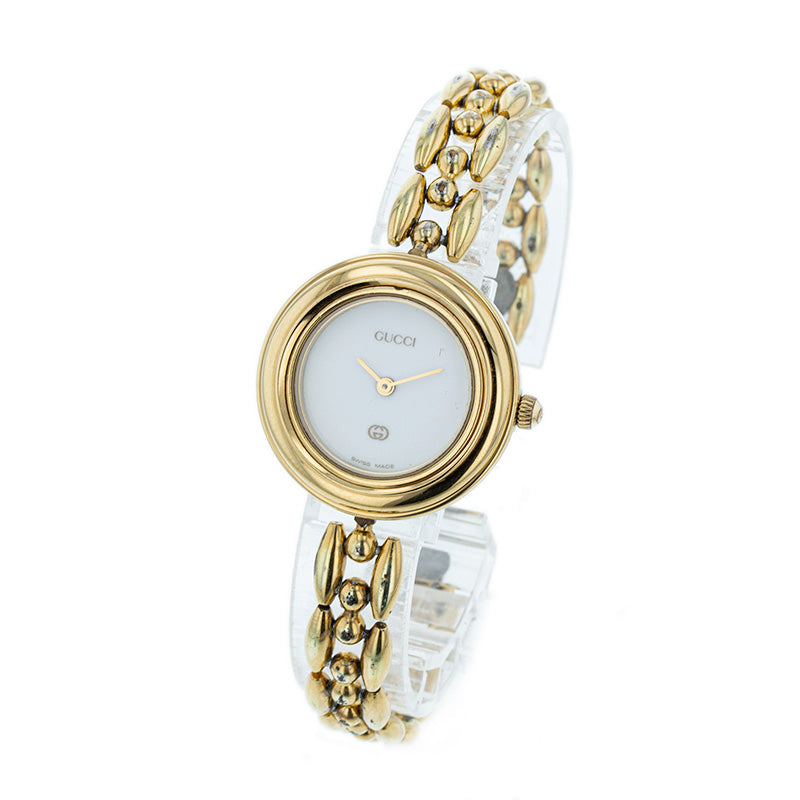 グッチ チェンジベゼル 5 ゴールド メッキ 腕時計 レディース GUCCI クオーツ ホワイト文字盤 【中古】