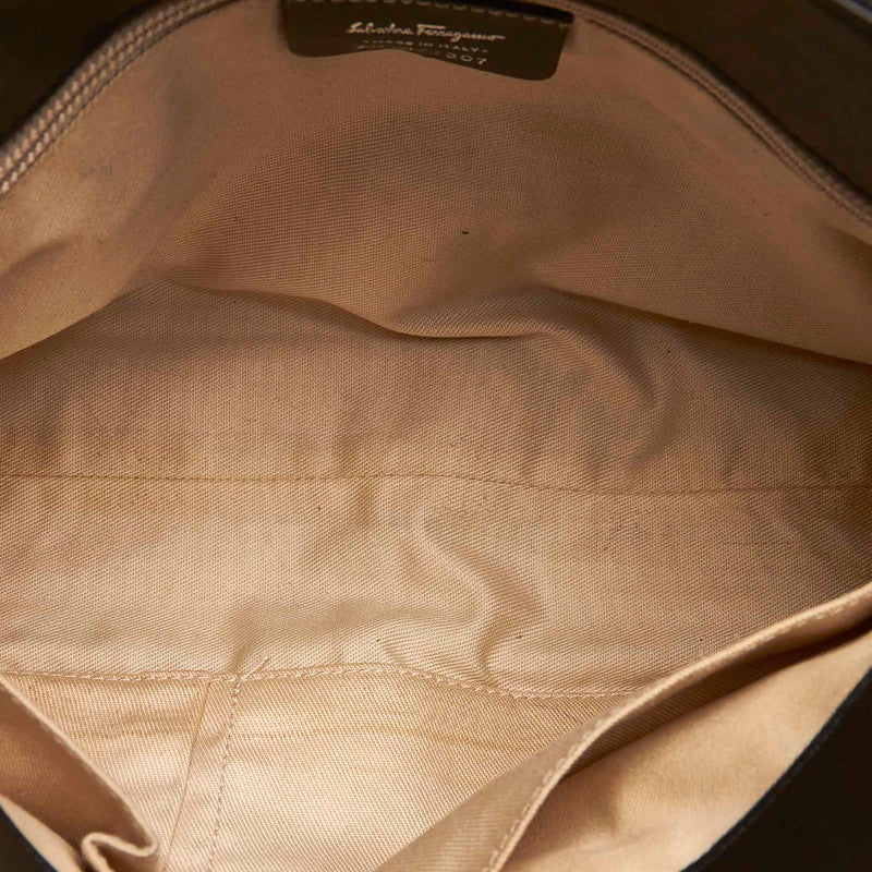 サルヴァトーレフェラガモ ヴァラ ティアード AU 21 4307 ブラック キャンバス レザー ハンドバッグ レディース Salvatore Ferragamo 【中古】