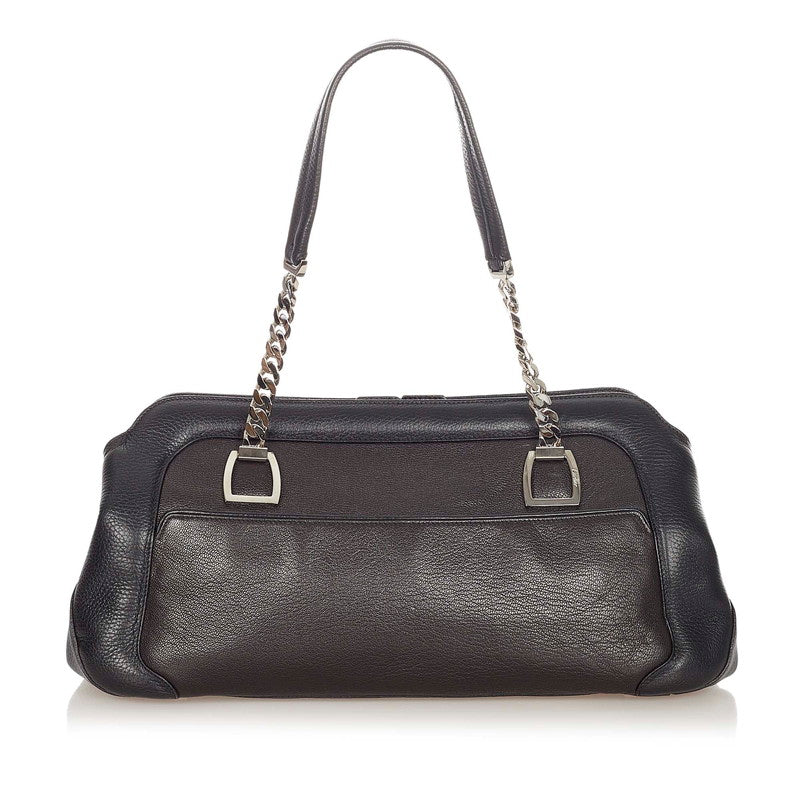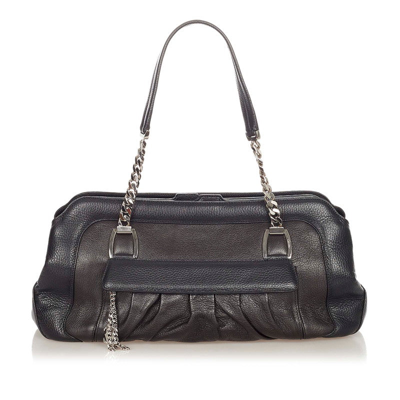 カルティエ ラドーニャ ブラック シルバー レザー ショルダーバッグ レディース CARTIER 【中古】