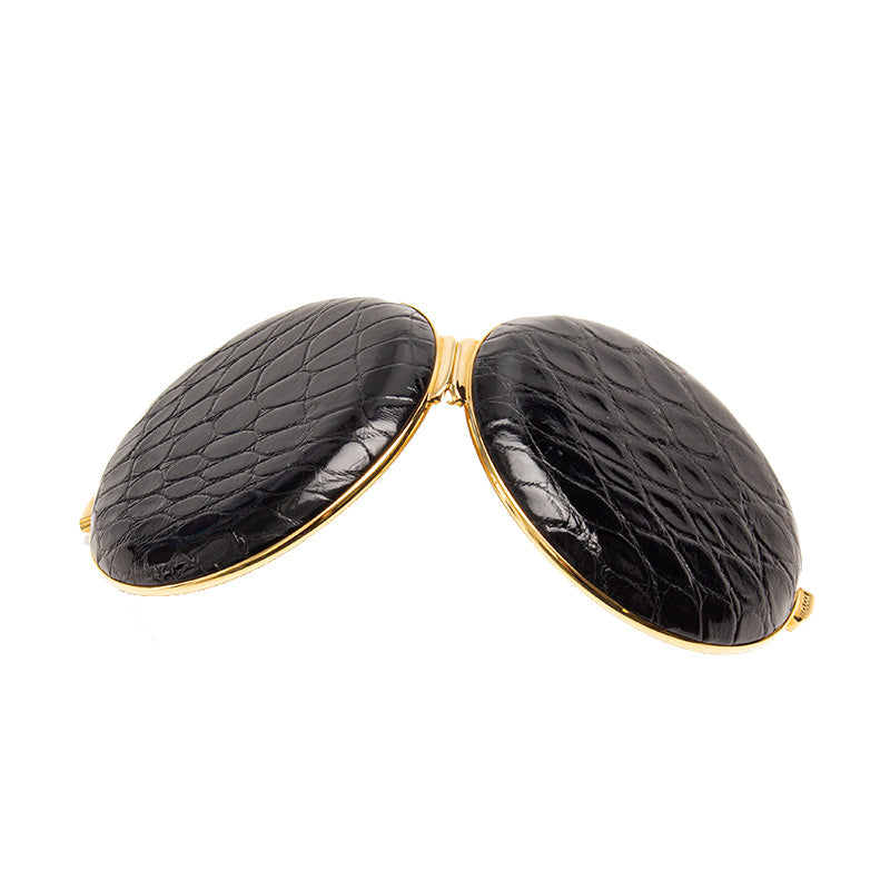 グッチ ミラー 手鏡・コンパクト ブラック ゴールド レザー レディース GUCCI 【中古】