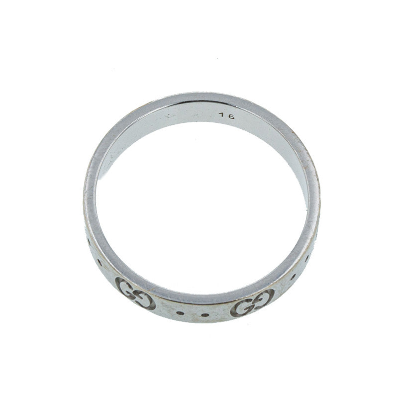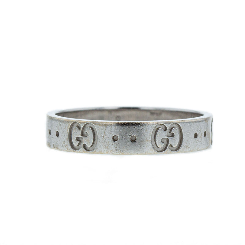 グッチ シルバー K18WG ホワイトゴールド アイコン リング 指輪 レディース GUCCI 16号 【中古】