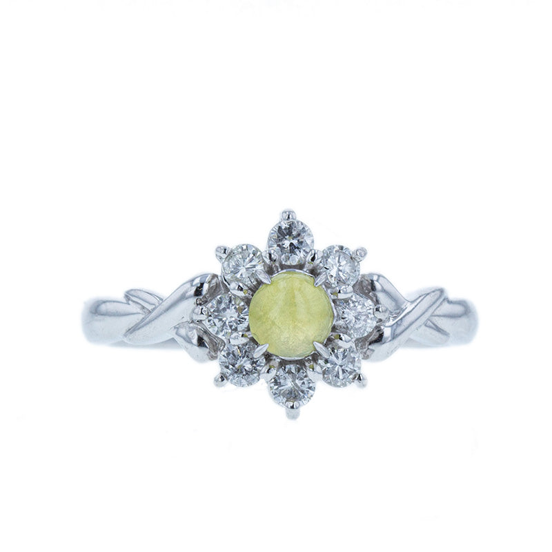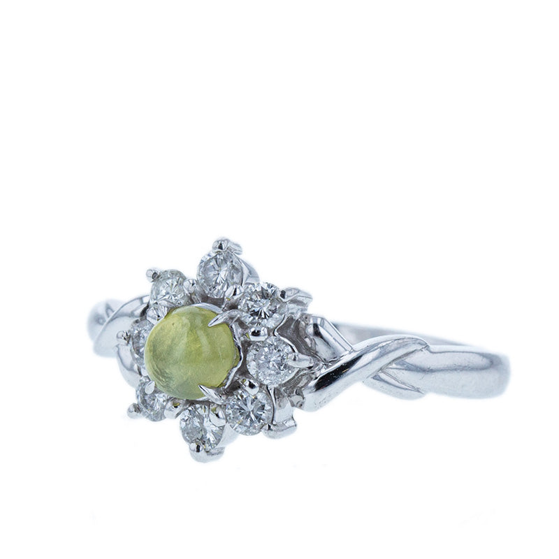 Pt900 プラチナ クリソベリルキャッツアイ0.512ct ダイヤ0.34ct リング 指輪 レディース 12号 【中古】