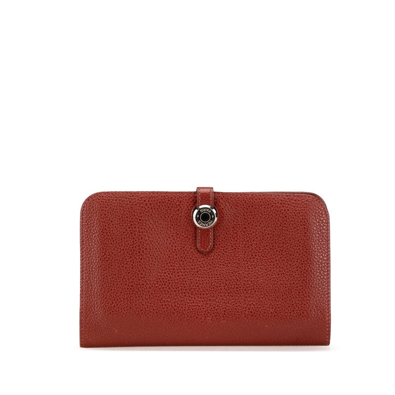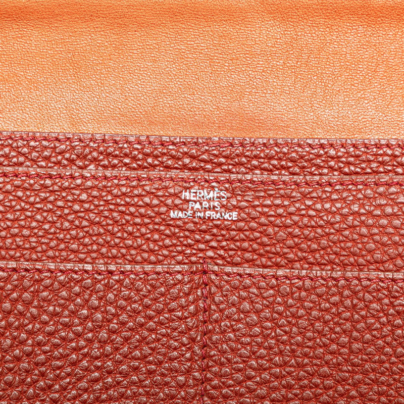 エルメス ドゴンデュオ ドゴンGM 長財布 レッド ブラウン トゴ レディース HERMES 【中古】