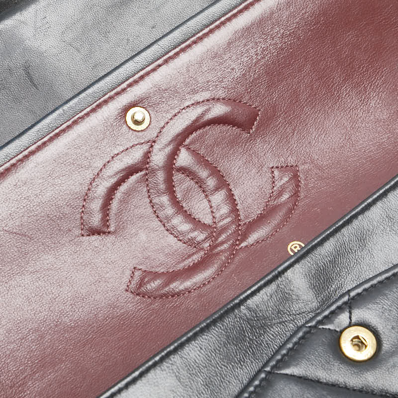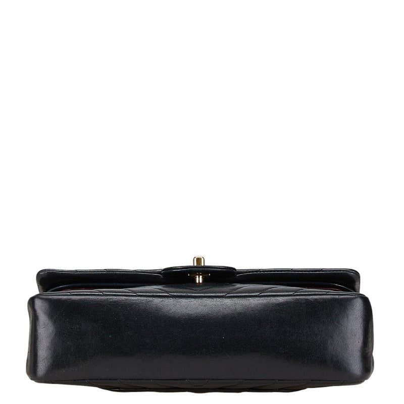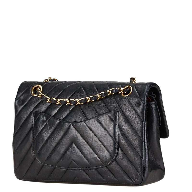 シャネル Vステッチ ダブルフラップ ココマーク チェーン ショルダーバッグ ブラック ラムスキン レディース CHANEL 【中古】
