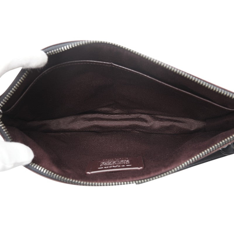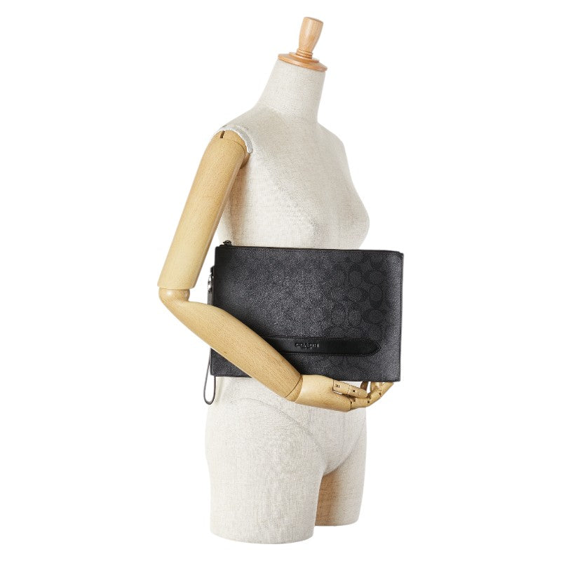 コーチ シグネチャー セカンドバッグ クラッチバッグ グレー ブラック PVC レザー メンズ COACH 【中古】