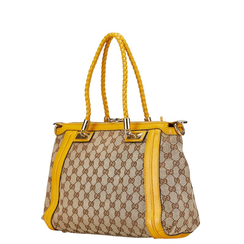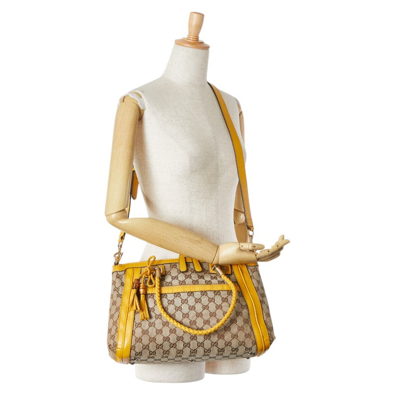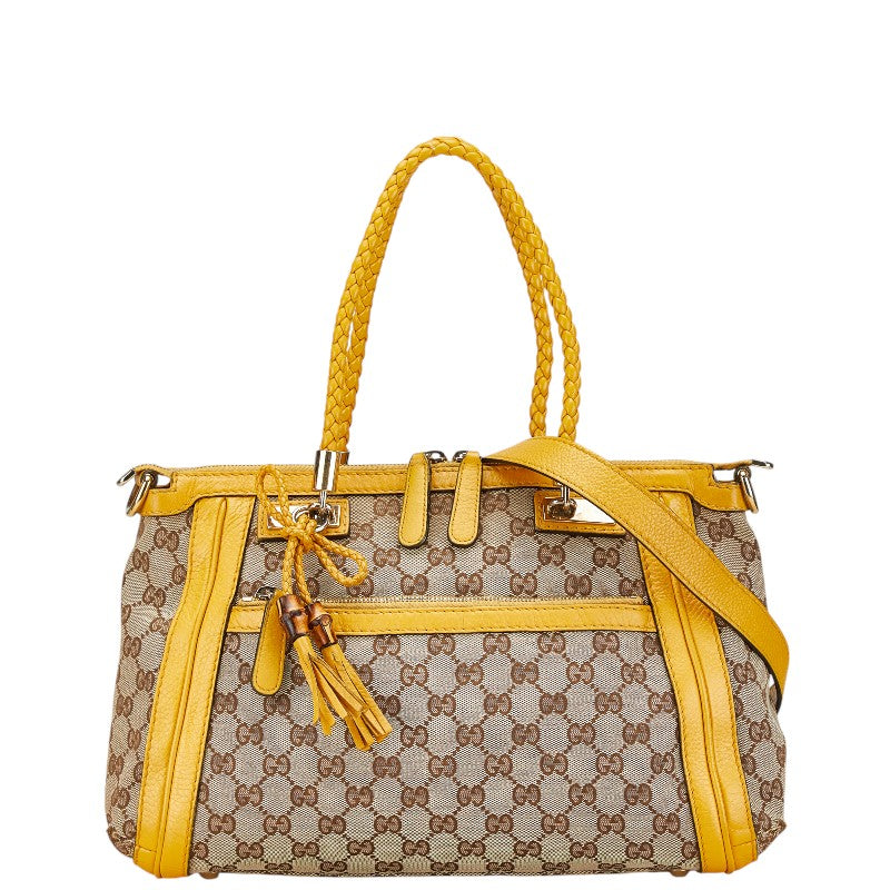 グッチ GGキャンバス ベラ バンブー ハンドバッグ ショルダーバッグ 2WAY 282300 ベージュ イエロー キャンバス レザー レディース GUCCI 【中古】