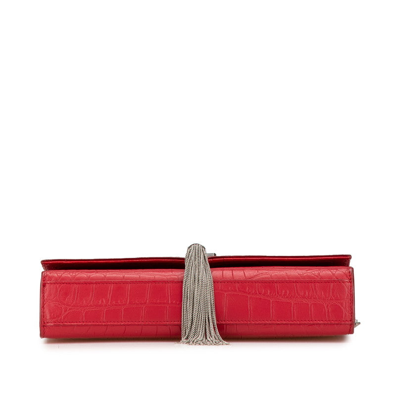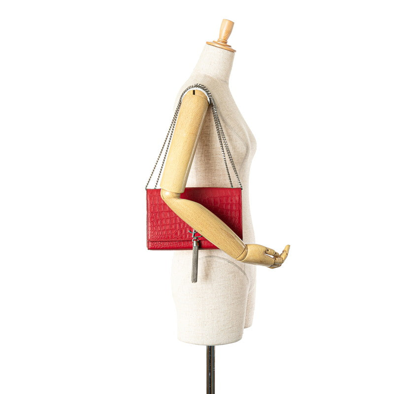 サンローラン クラシック ケイト 型押し タッセル チェーン ショルダーバッグ 354119 レッド レザー レディース SAINT LAURENT 【中古】