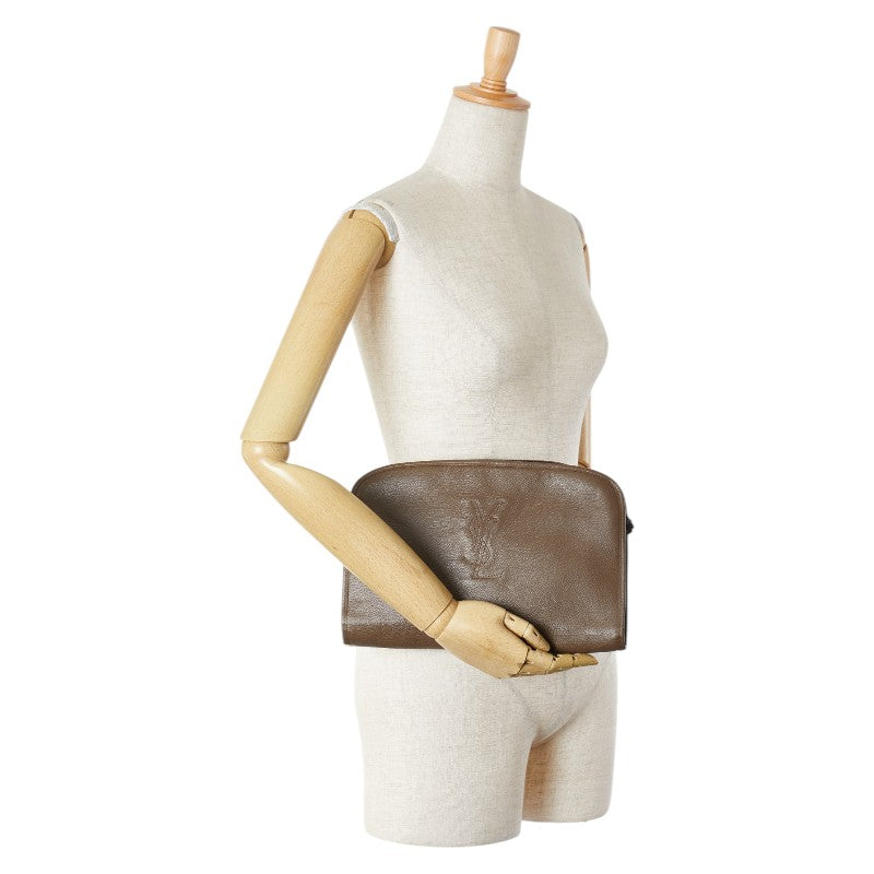 サンローラン YSLロゴ セカンドバッグ クラッチバッグ ブラウン レザー メンズ SAINT LAURENT 【中古】