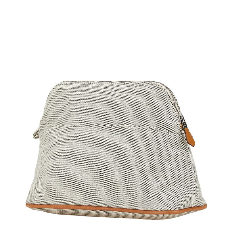 エルメス ボリードポーチMM ポーチ コスメポーチ 小物入れ グレー ブラウン コットン レザー レディース HERMES 【中古】