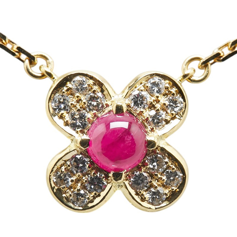 クローバー 四つ葉 モチーフ ネックレス K18YG イエローゴールド レディース 【中古】
