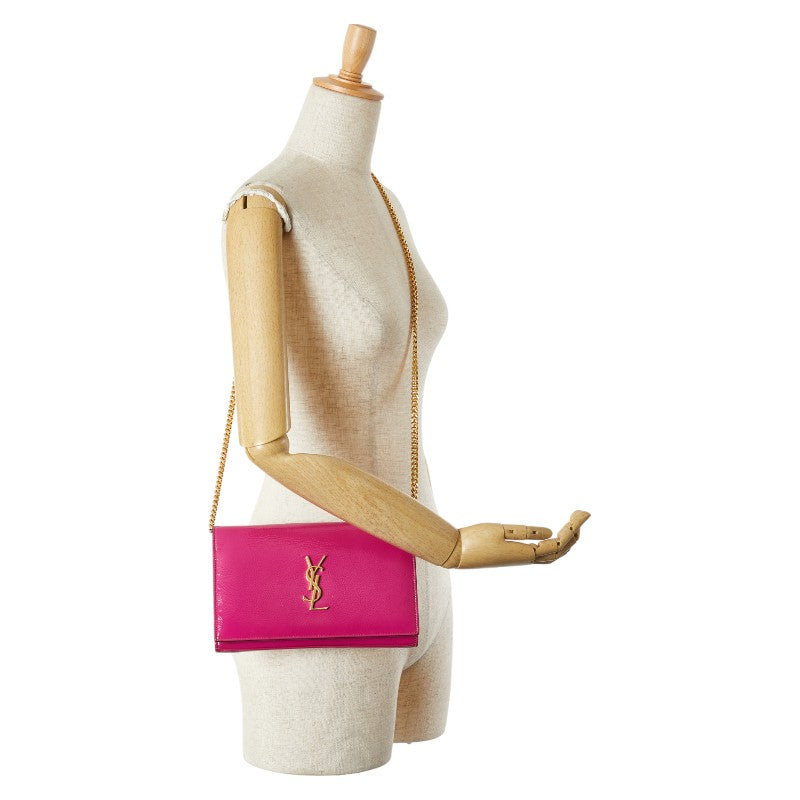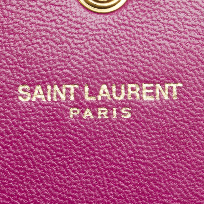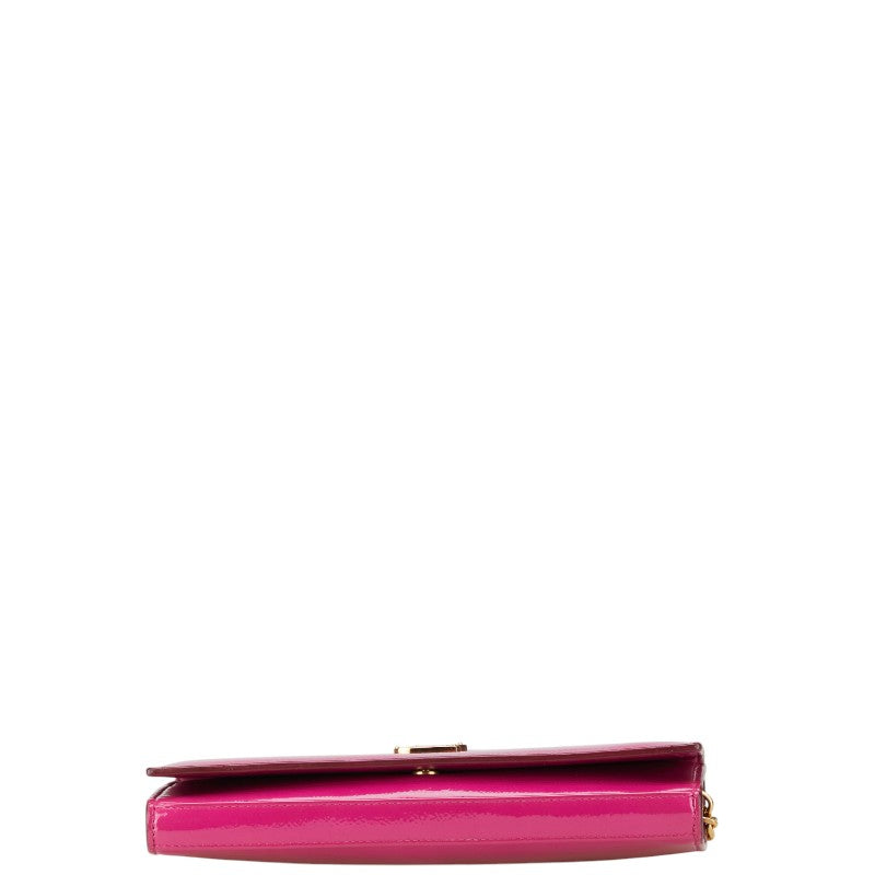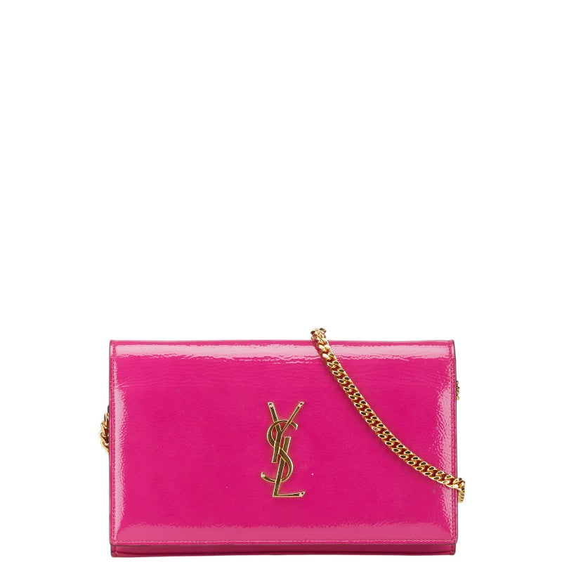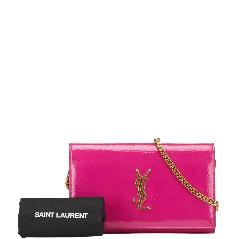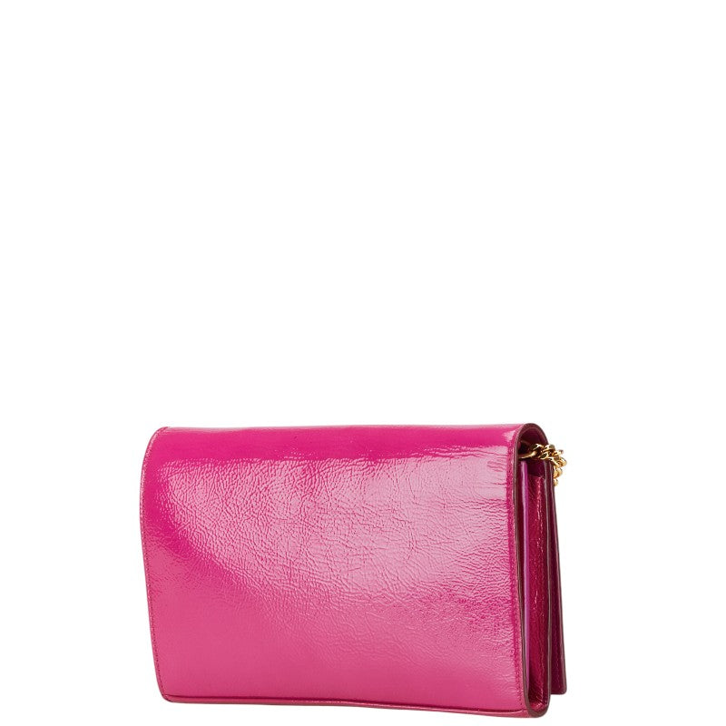 サンローラン YSLロゴ サッチェル ミディアム 斜め掛け チェーン ショルダーバッグ 377829 ピンク パテントレザー レディース SAINT LAURENT 【中古】