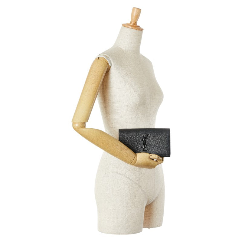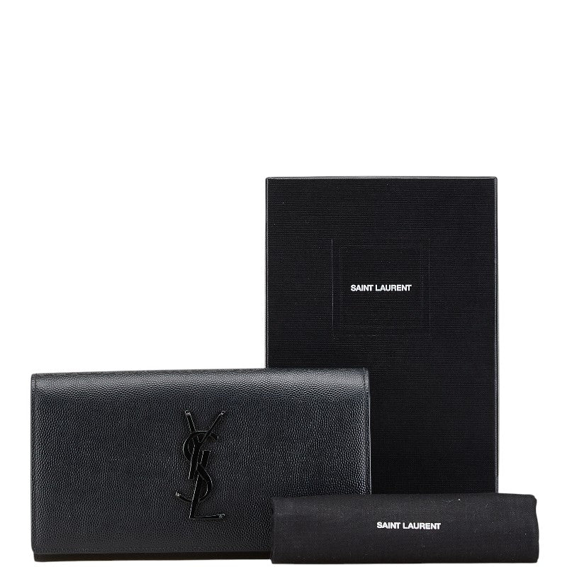 サンローラン YSLロゴ 長財布 ブラック レザー レディース SAINT LAURENT 【中古】
