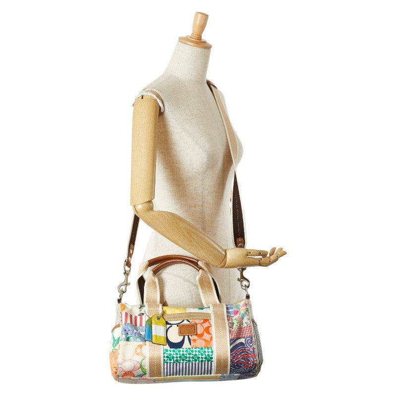 コーチ ミニボストンバッグ ショルダーバッグ 10452 ベージュ ブラウン マルチカラー キャンバス レザー レディース COACH 【中古】