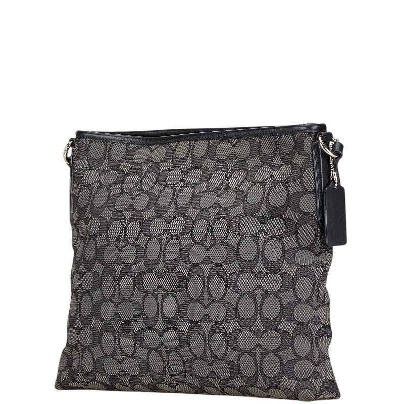 コーチ シグネチャー ショルダーバッグ F58285 ブラック キャンバス レザー レディース COACH 【中古】