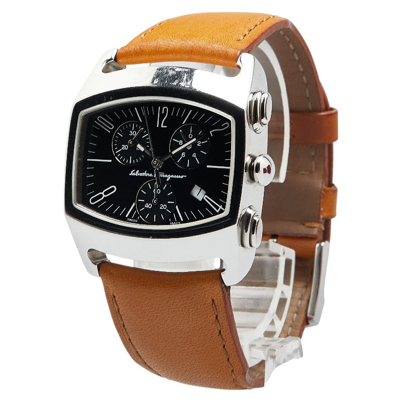 サルヴァトーレフェラガモ 腕時計 030705 クオーツ ブラック文字盤 ステンレススチール レザー メンズ Salvatore Ferragamo 【中古】