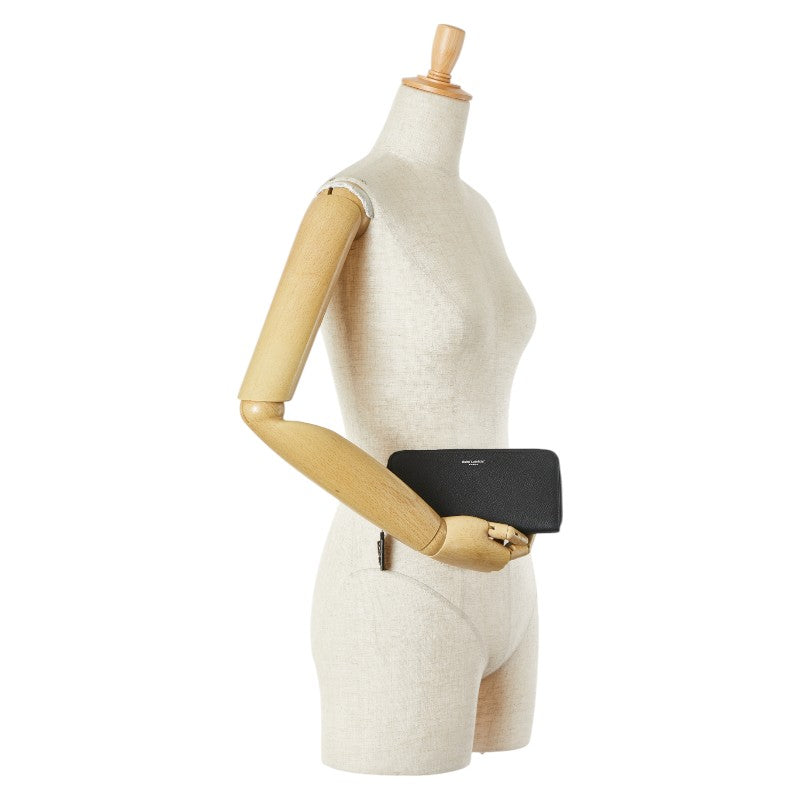 サンローラン ラウンドファスナー 長財布 414680 ブラック レザー レディース SAINT LAURENT 【中古】
