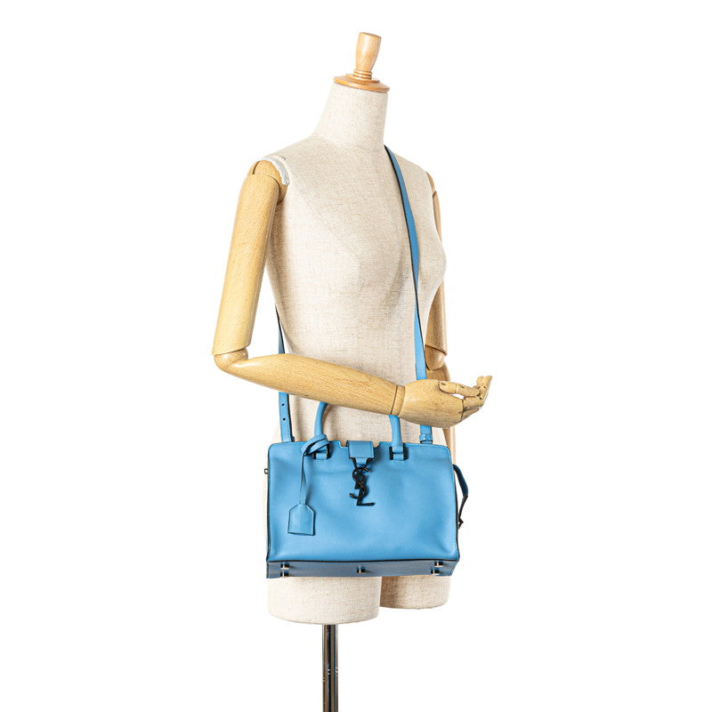 サンローラン ベイビーカバス 斜め掛け ハンドバッグ ショルダーバッグ 2WAY 424868 ライトブルー レザー レディース SAINT LAURENT 【中古】