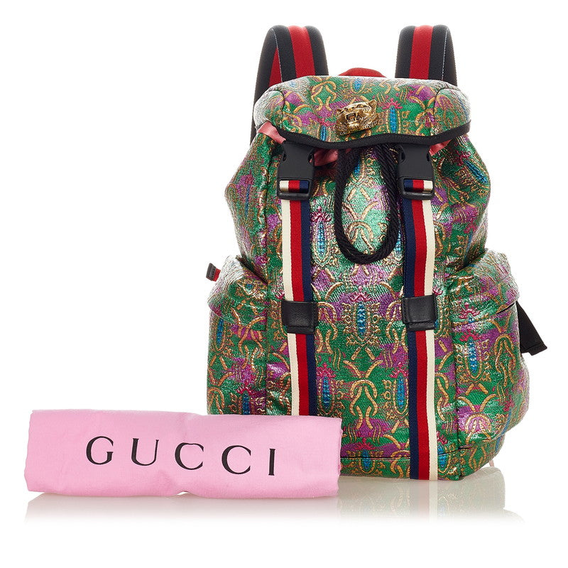 グッチ ブロケード 466467 グリーン マルチカラー キャンバス リュック バックパック レディース GUCCI 【中古】