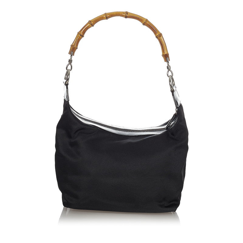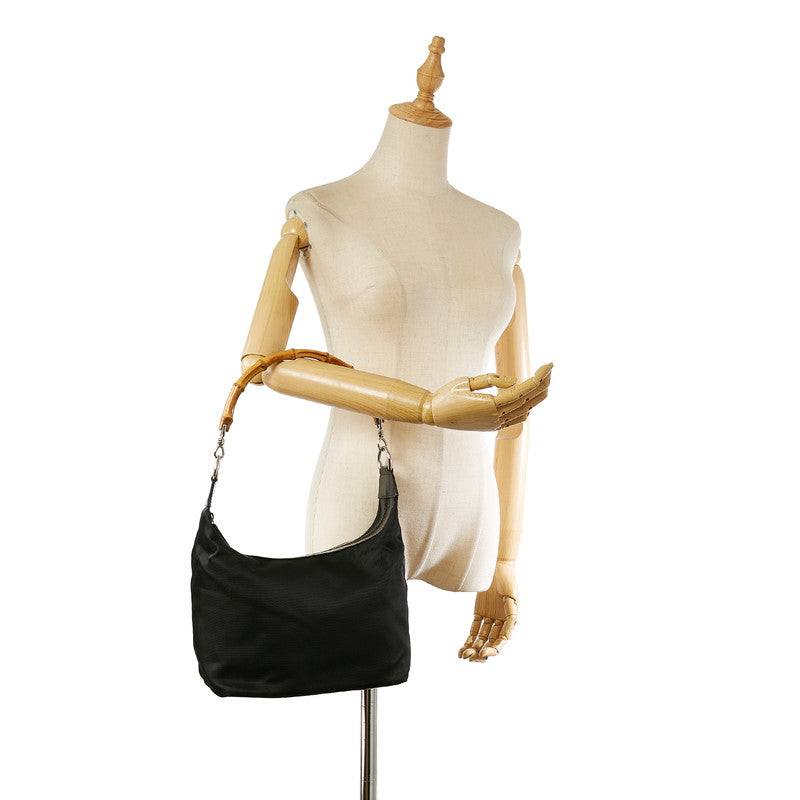 グッチ バンブー 000 1998 0531 ブラック ナイロン レザー ショルダーバッグ レディース GUCCI 【中古】