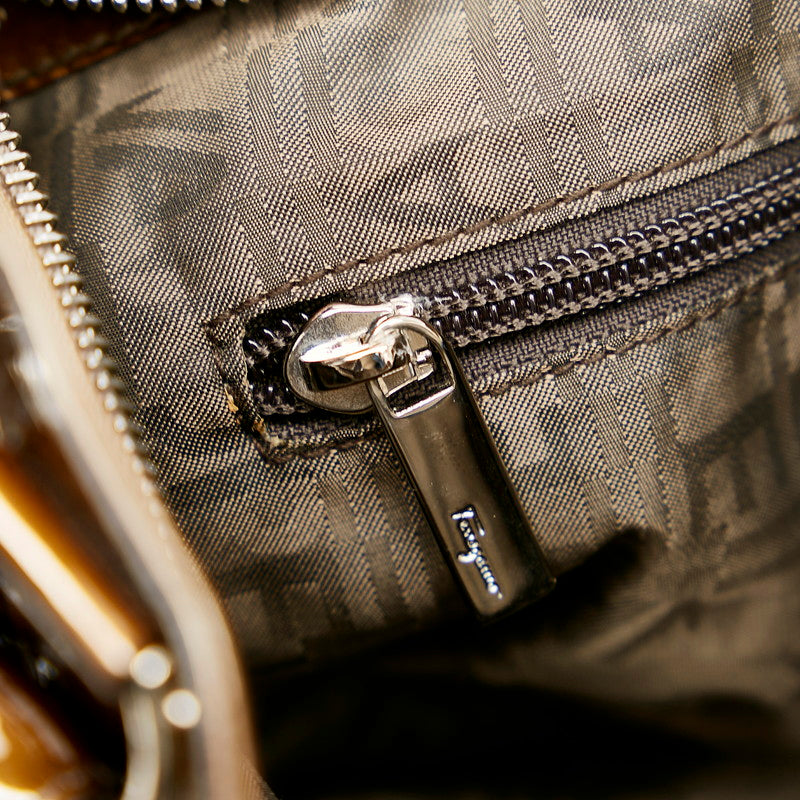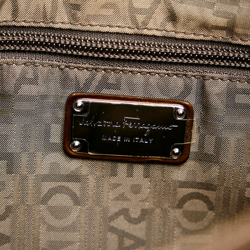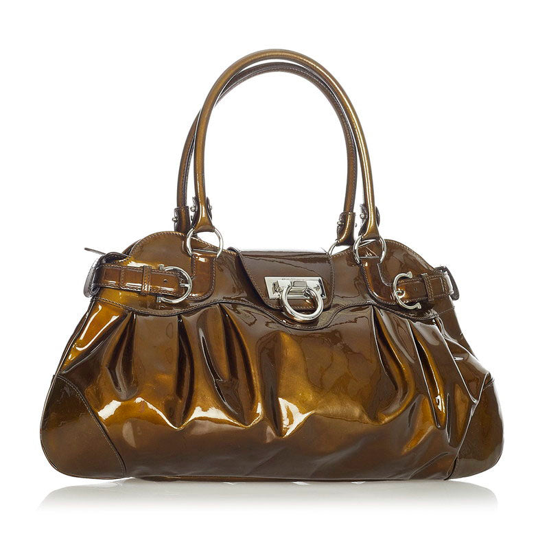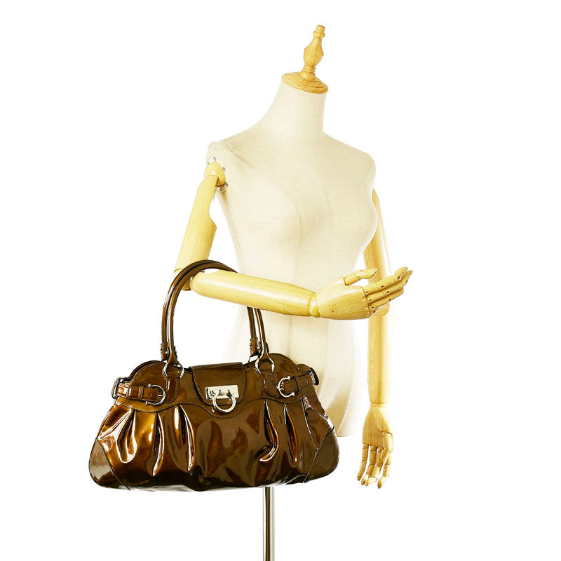 サルヴァトーレフェラガモ ガンチーニ ハンドバッグ AB-21 5370 カーキ パテントレザー レディース Salvatore Ferragamo 【中古】