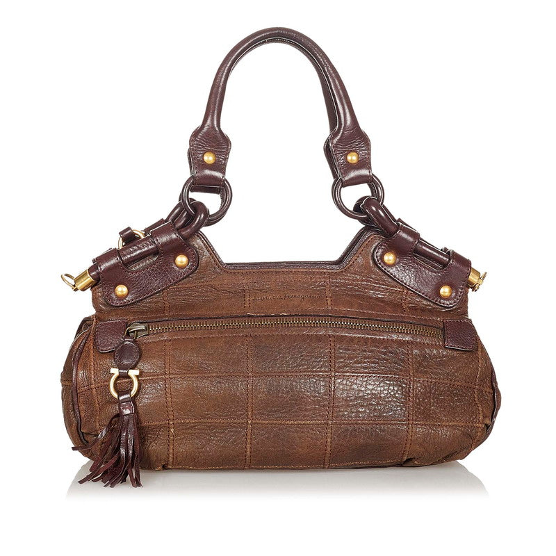 サルヴァトーレフェラガモ ガンチーニ ハンドバッグ ブラウン レザー レディース Salvatore Ferragamo 【中古】