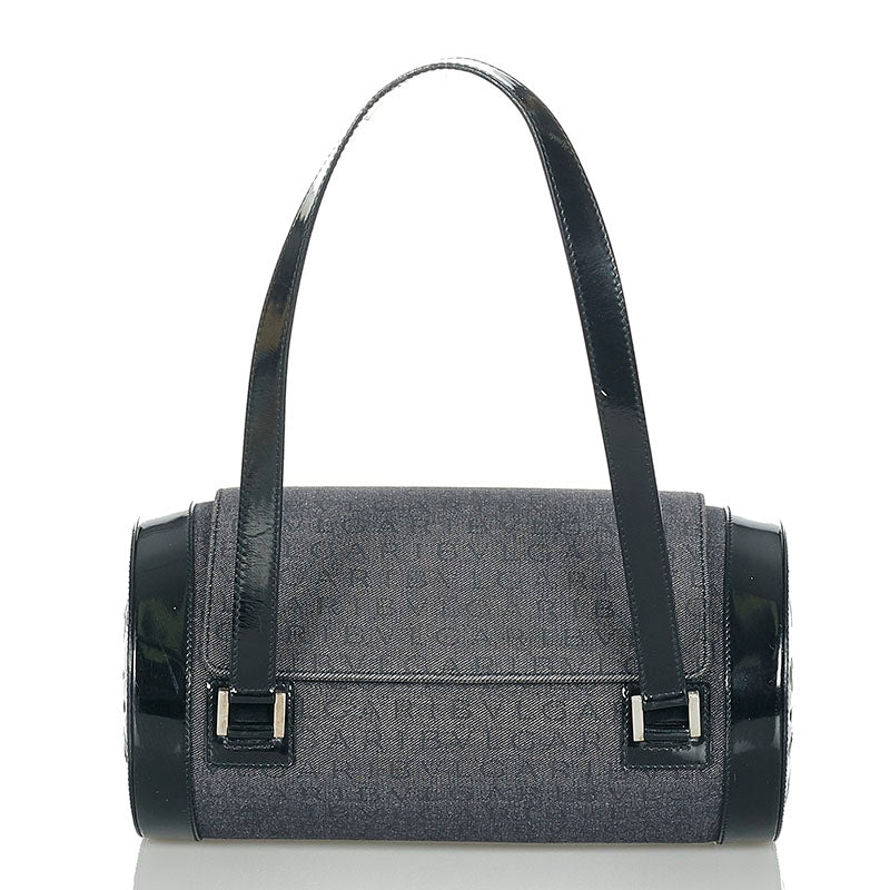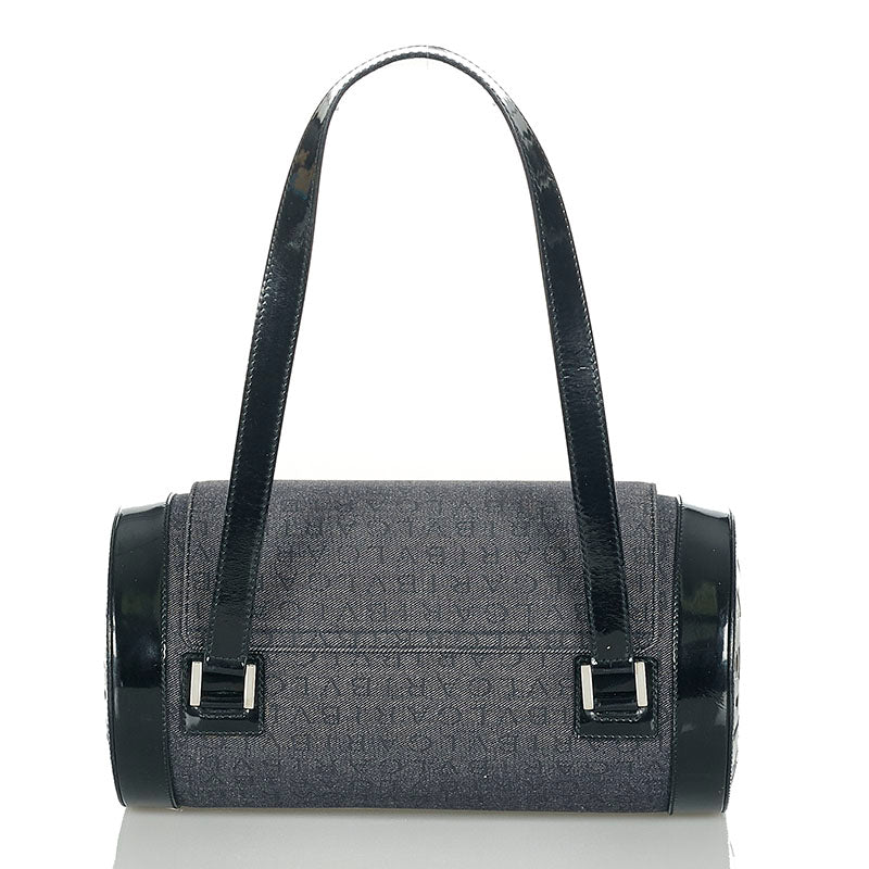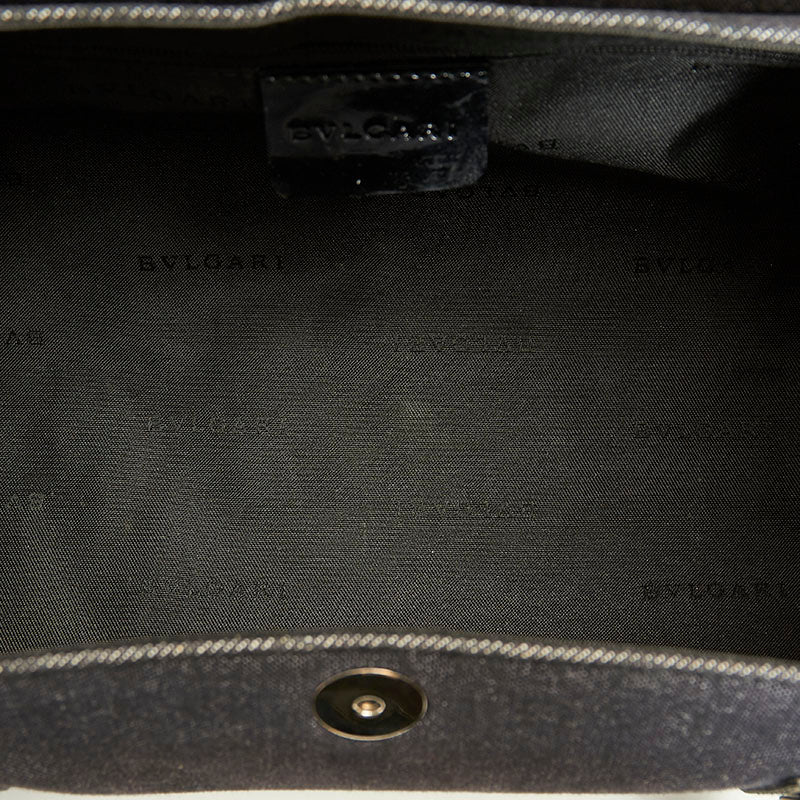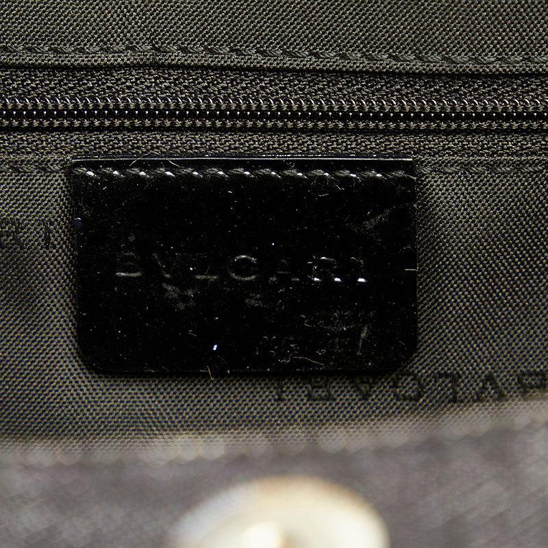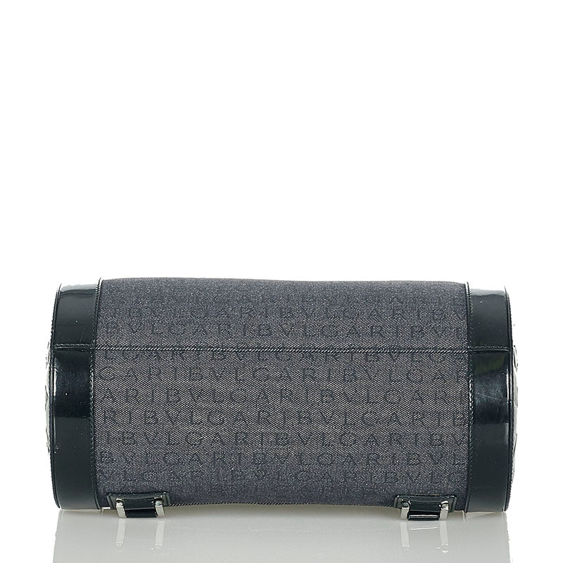 ブルガリ ロゴマニア ブルー ブラック デニム パテントレザー ショルダーバッグ レディース BVLGARI 【中古】