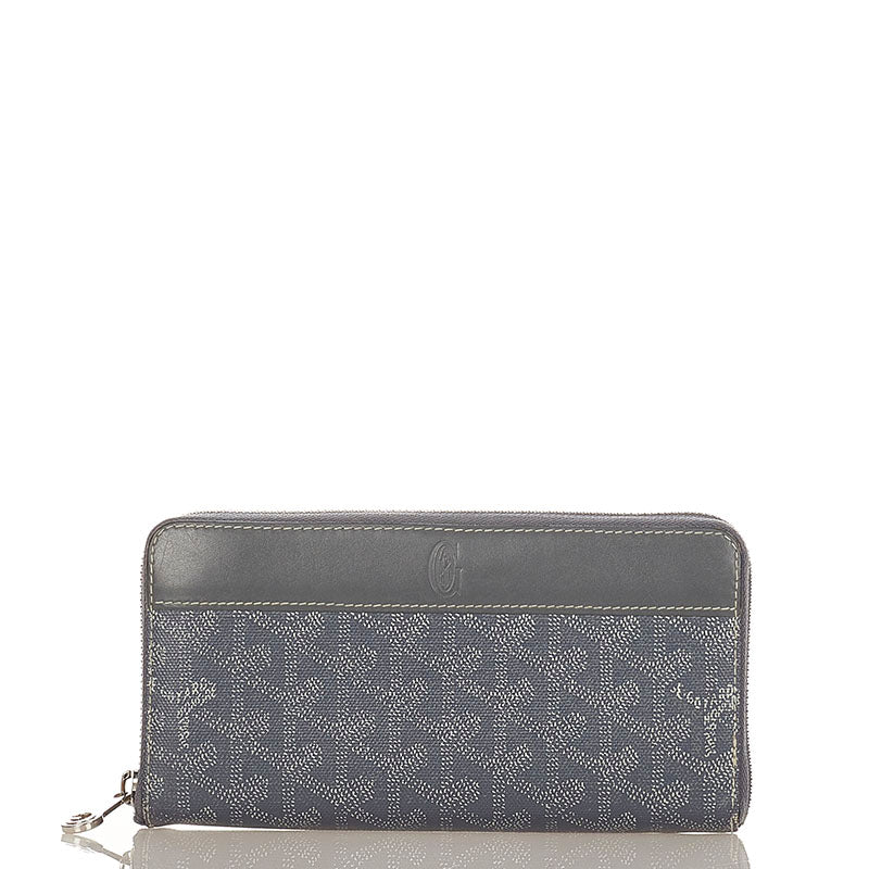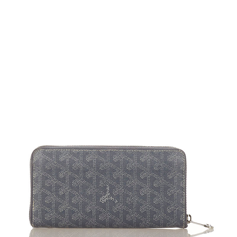 ゴヤール マティニョン ジップGM グレー PVC レザー ラウンドファスナー 長財布 メンズ GOYARD 【中古】