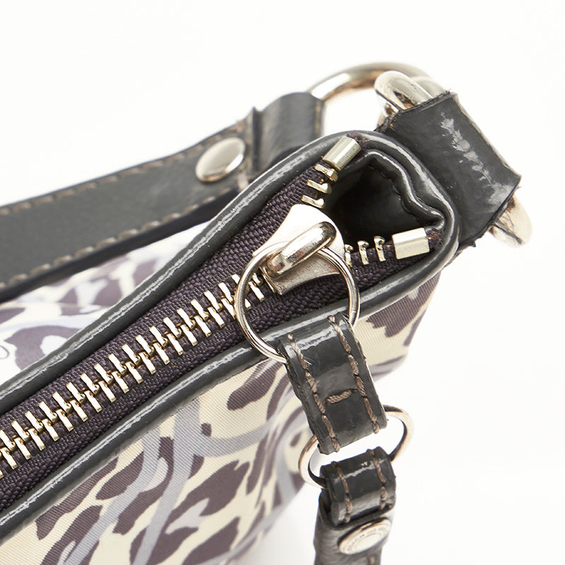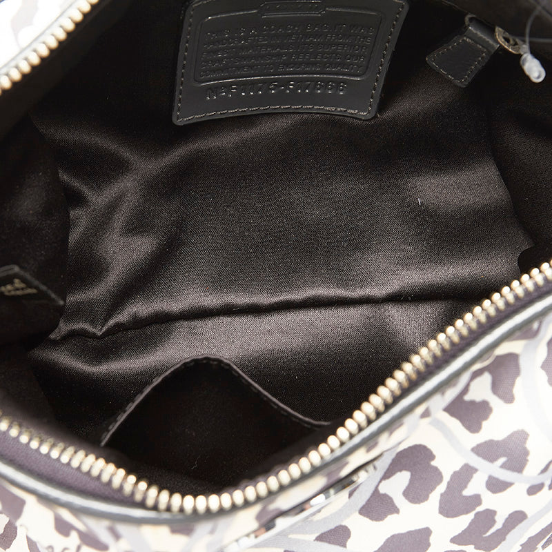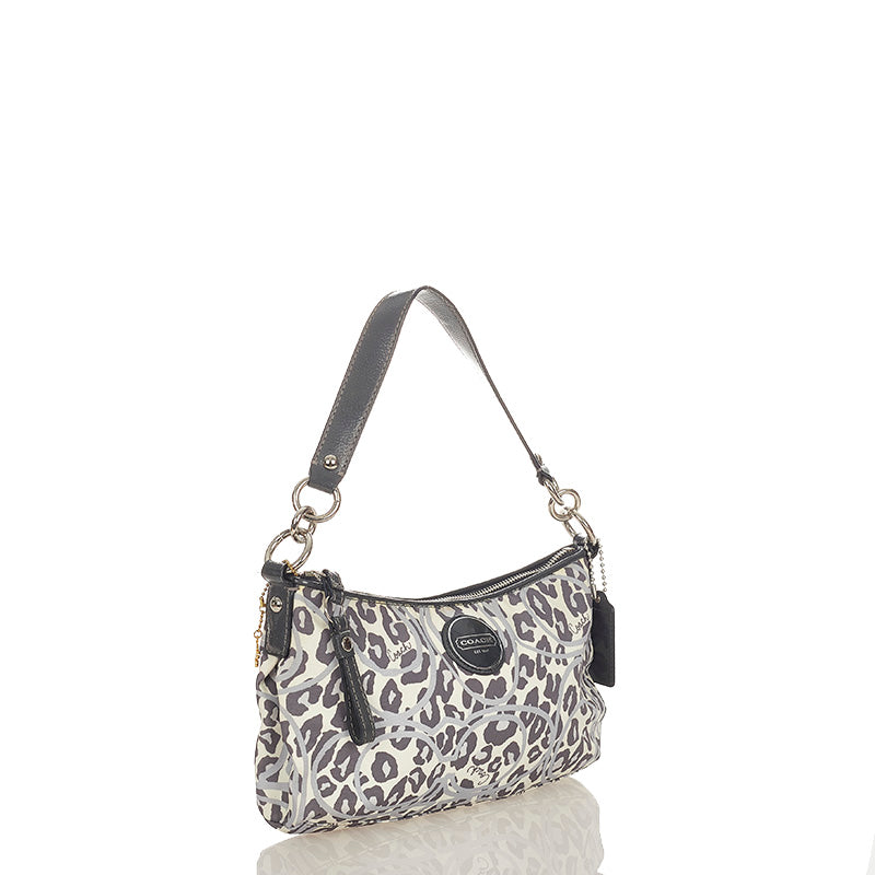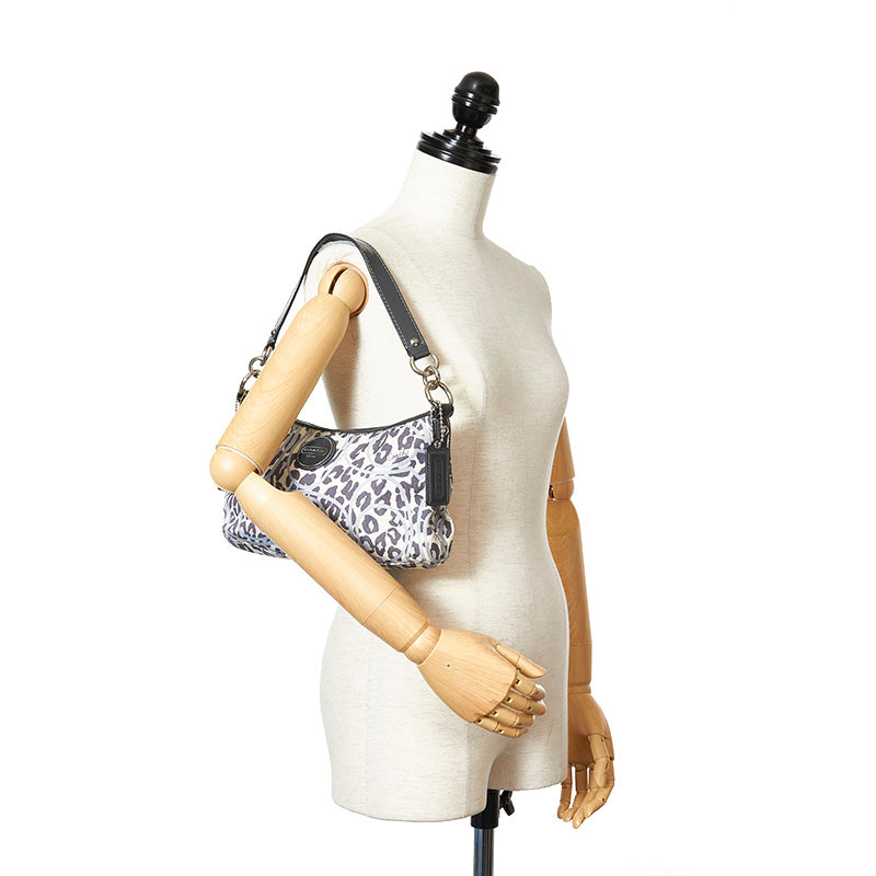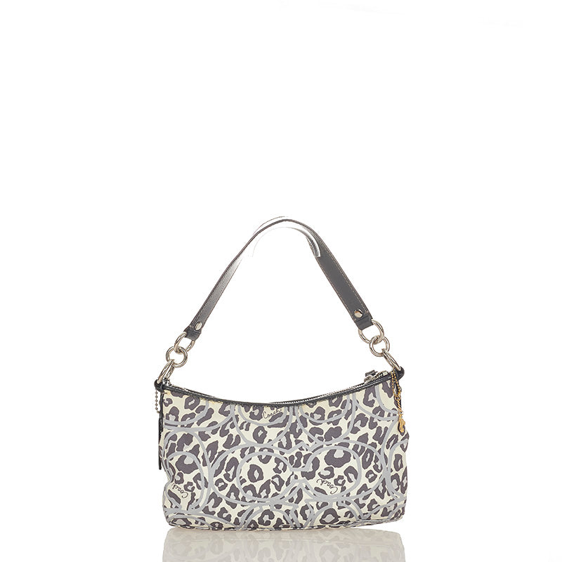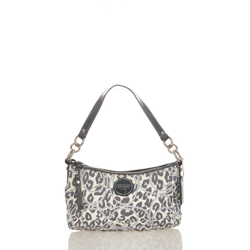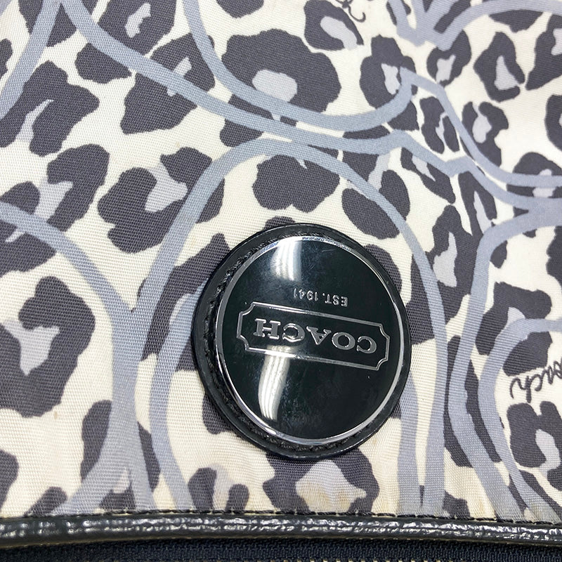 コーチ レオパード ヒョウ柄 F11175 グレー ホワイト ナイロン エナメル ショルダーバッグ レディース COACH 【中古】