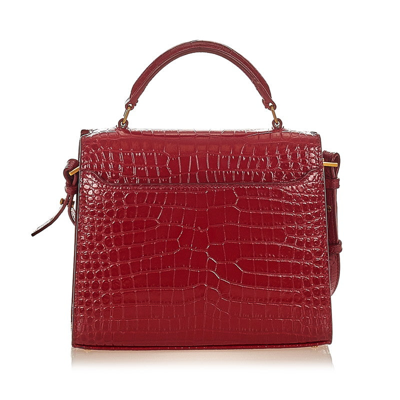 サンローラン カサンドラ レッド クロコダイル ハンドバッグ ショルダーバッグ 2WAY レディース SAINT LAURENT 【中古】