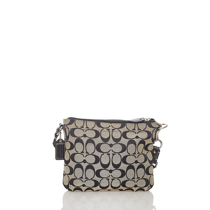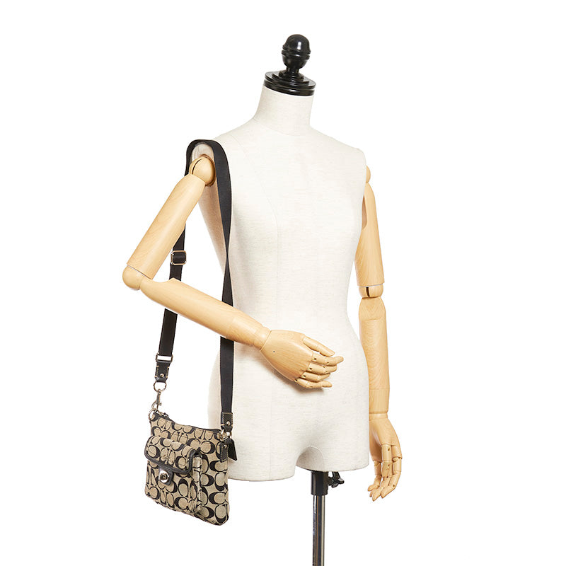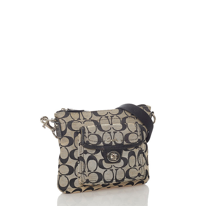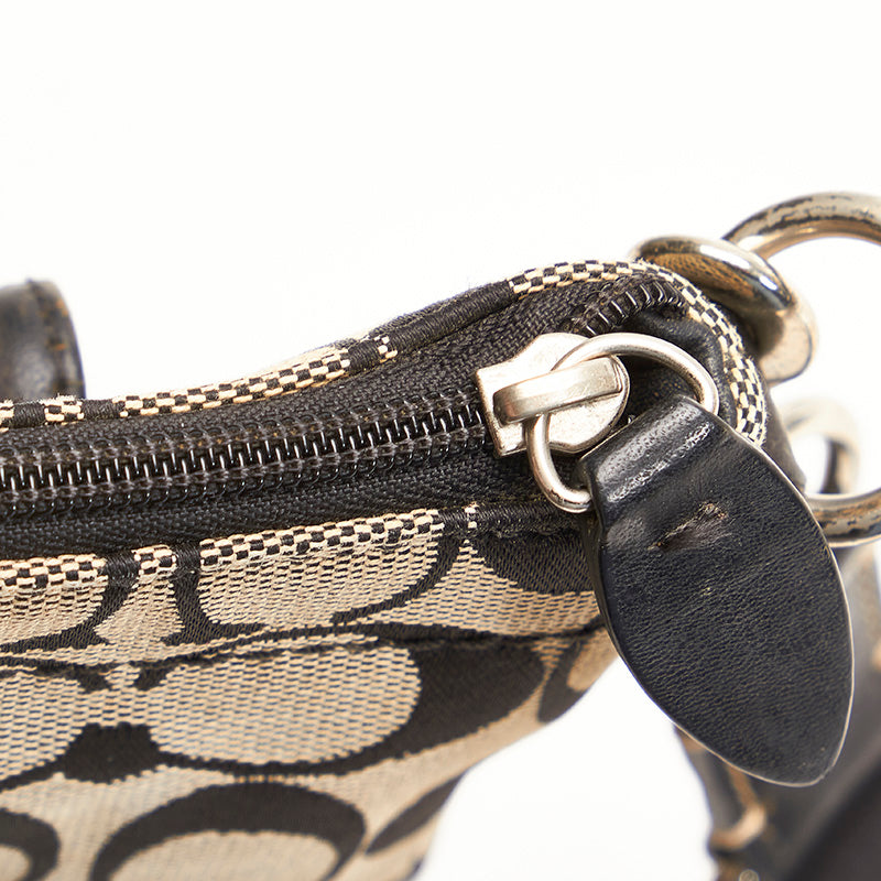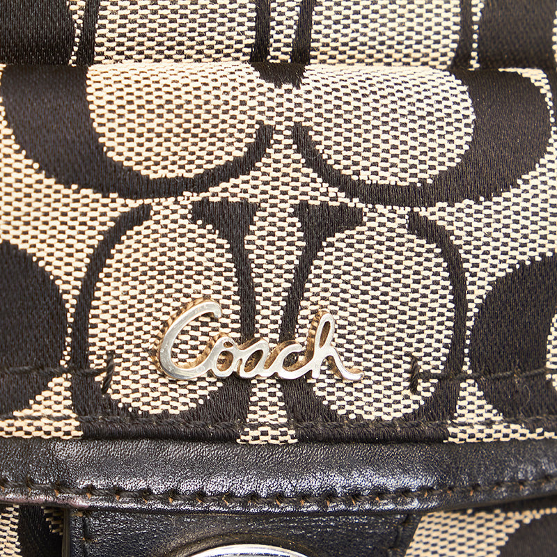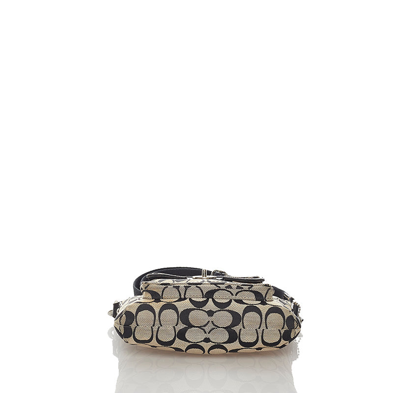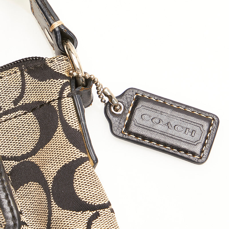コーチ ベージュ ブラック キャンバス レザー ショルダーバッグ レディース COACH 【中古】