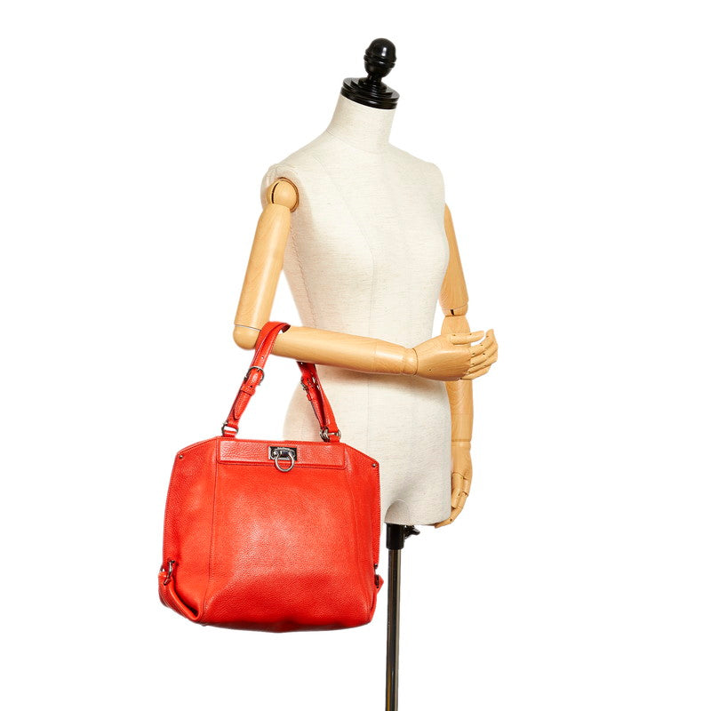 サルヴァトーレフェラガモ ガンチーニ FJ-21 D656 オレンジ レザー ショルダーバッグ レディース Salvatore Ferragamo 【中古】