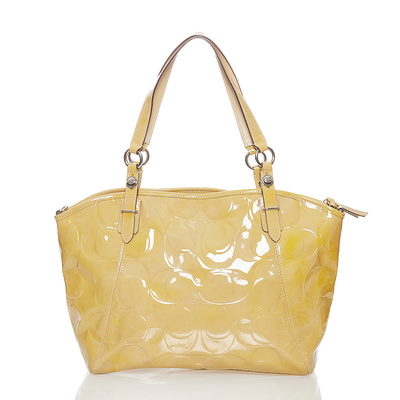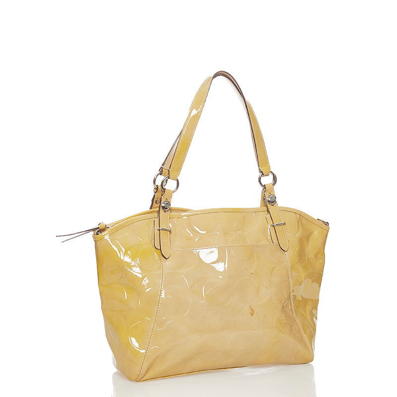 コーチ ハンドバッグ ショルダーバッグ 2WAY ベージュ パテントレザー レディース COACH 【中古】