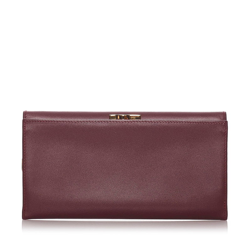 カルティエ マスト ワインレッド レザー 長財布 レディース CARTIER 【中古】