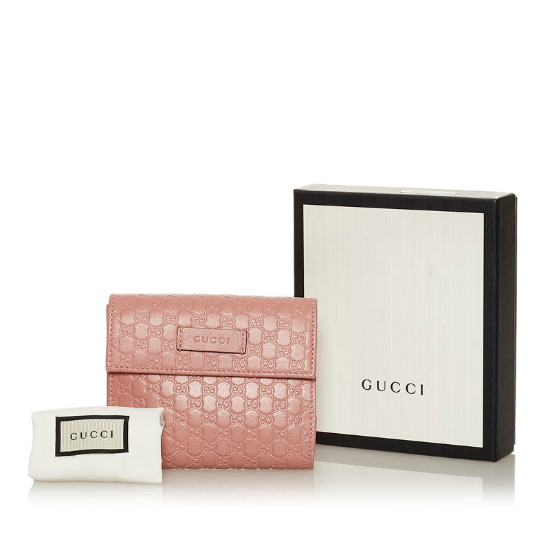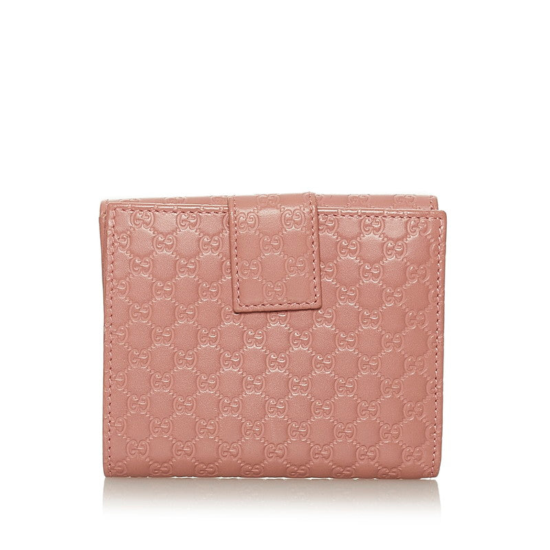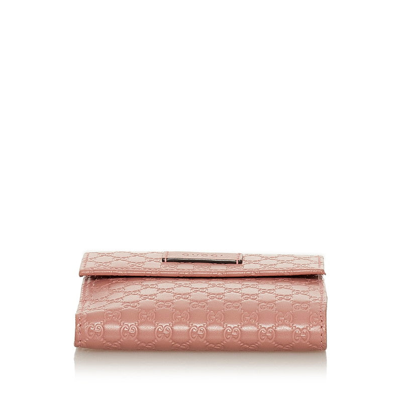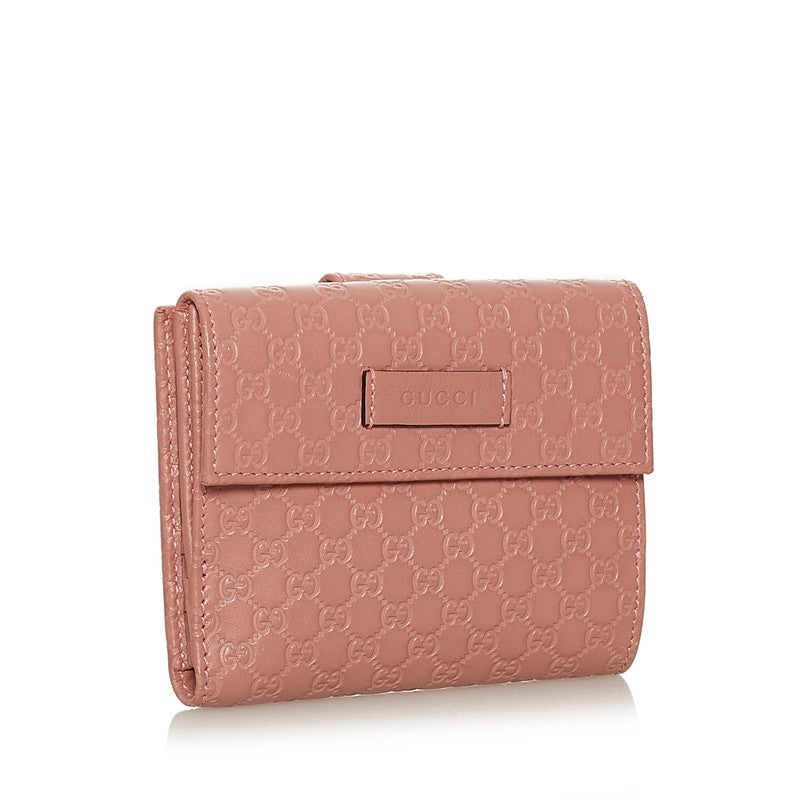 グッチ マイクロGG シマ 三つ折り財布 464916 ピンク レザー レディース GUCCI 【中古】