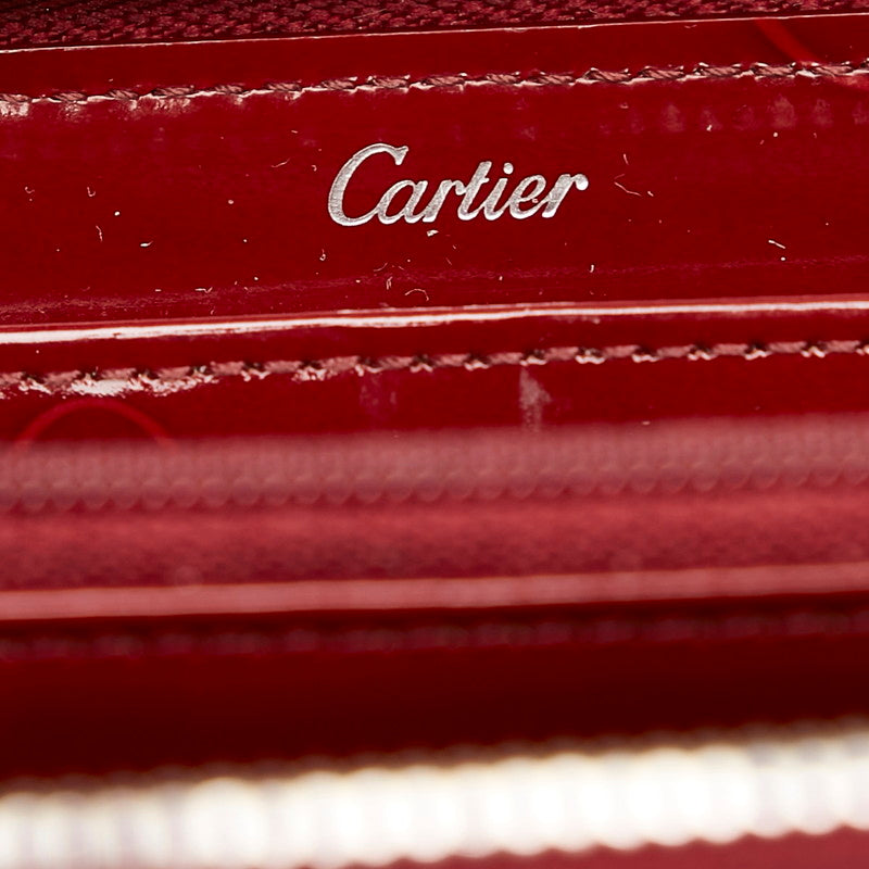 カルティエ ハッピーバースデー ラウンドファスナー 長財布 ボルドー エナメル レディース CARTIER 【中古】