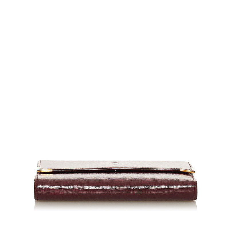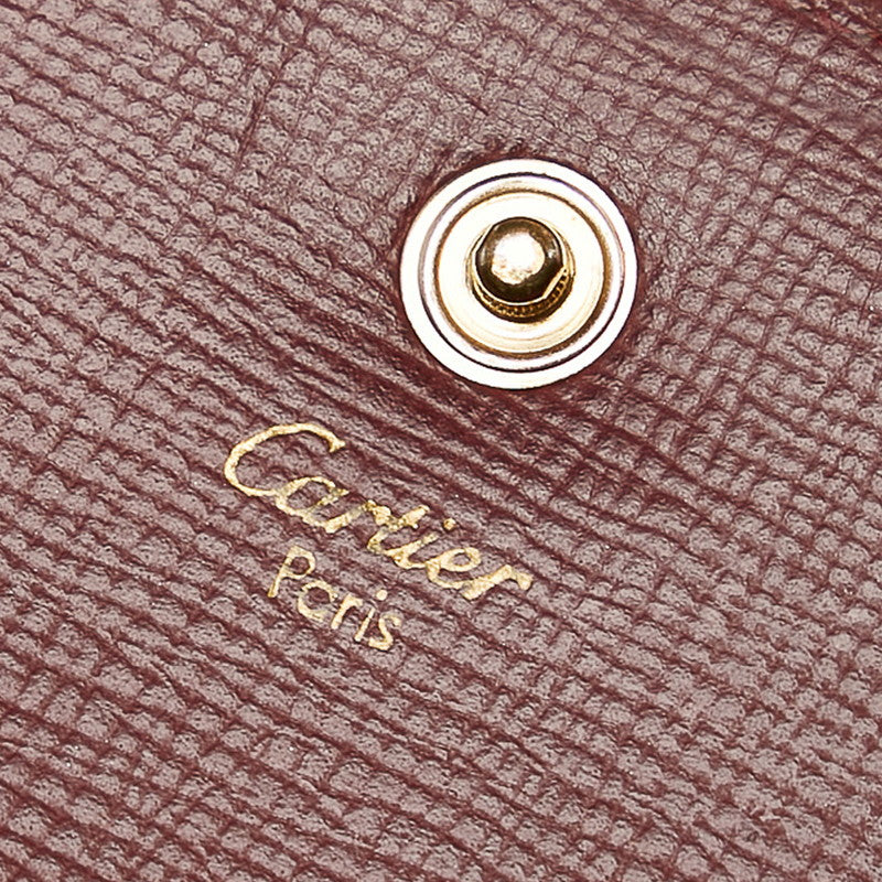 カルティエ マスト 三つ折り財布 ボルドー レザー レディース CARTIER 【中古】