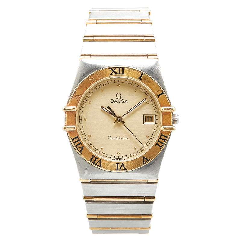 オメガ コンステレーション 腕時計 クオーツ ゴールド文字盤 ステンレススチール メッキ レディース OMEGA 【中古】