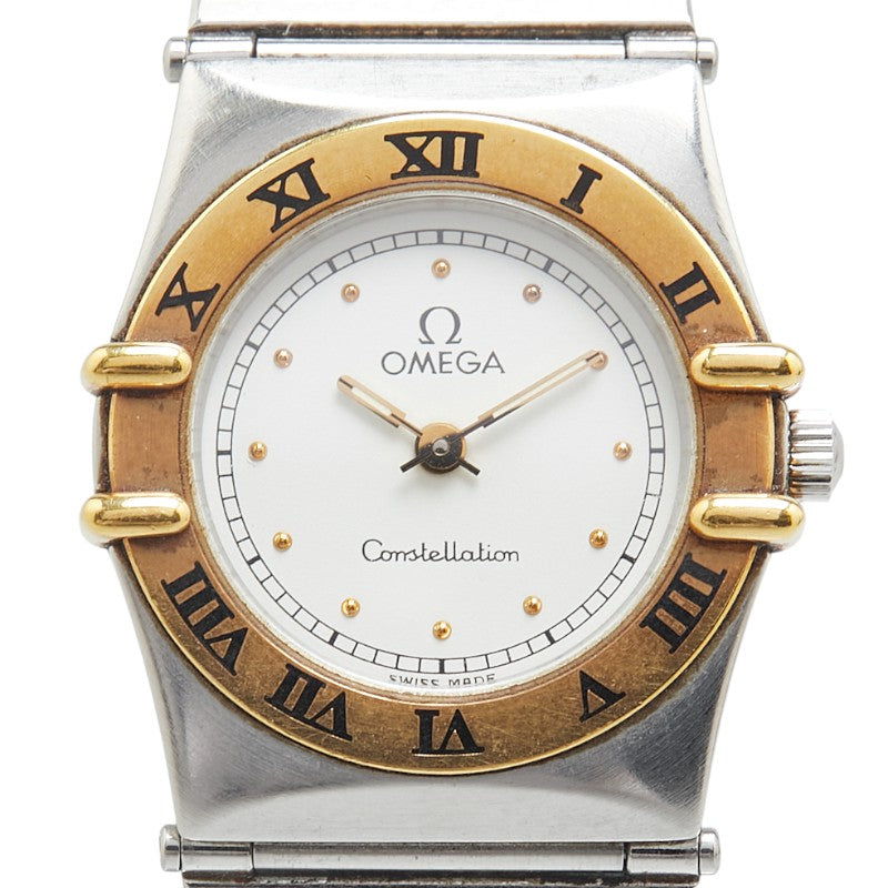 オメガ コンステレーション 腕時計 クオーツ ホワイト文字盤 ステンレススチール イエローゴールド レディース OMEGA 【中古】