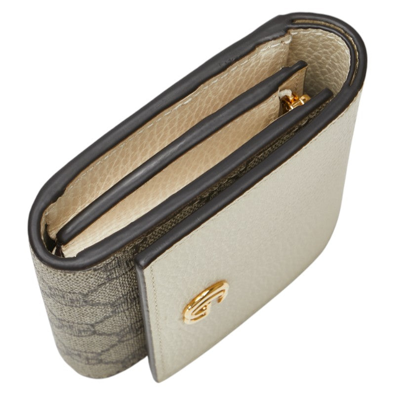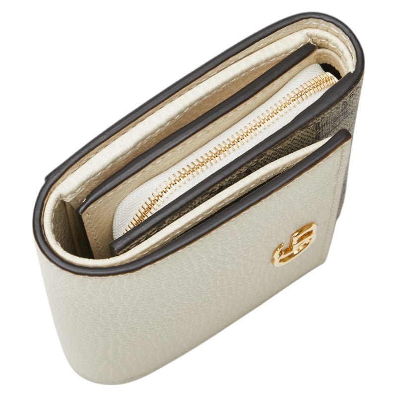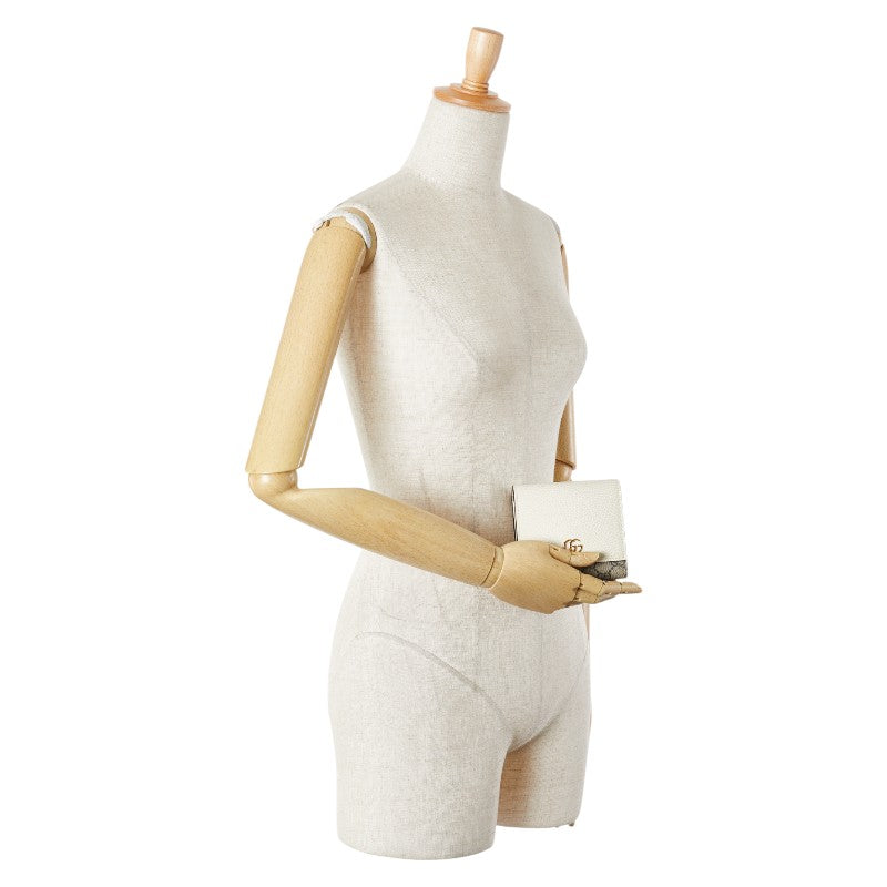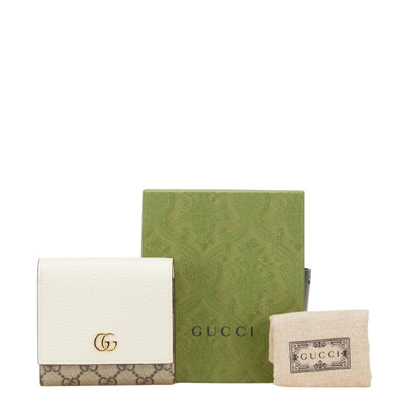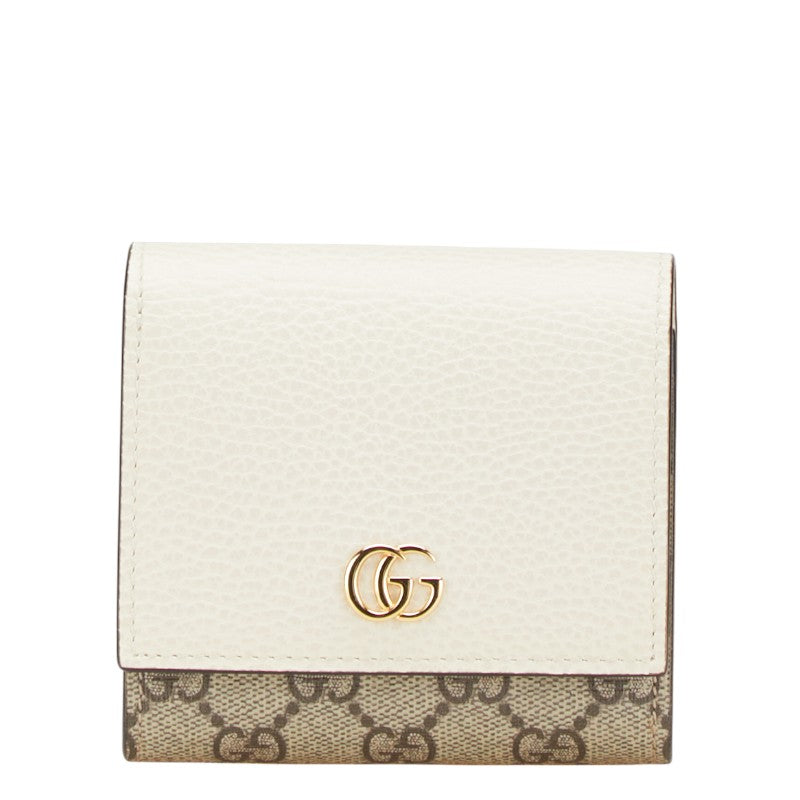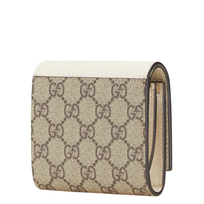 グッチ GGスプリーム ダブルG ミディアム ウォレット 二つ折り財布 598587 ベージュ ホワイト PVC レザー レディース GUCCI 【中古】