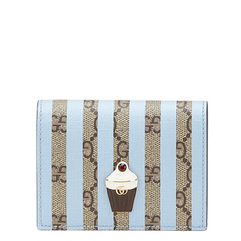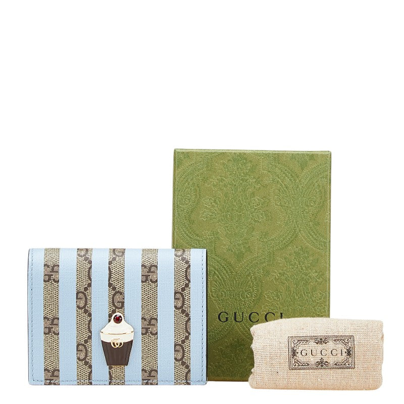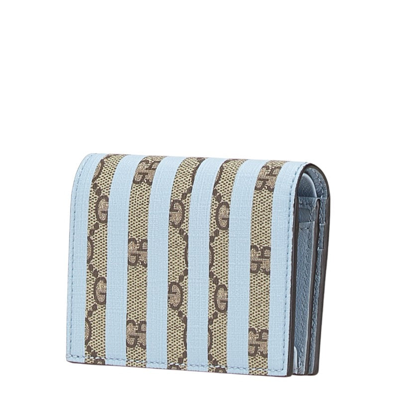グッチ GGスプリーム アイスクリーム 二つ折り財布 コンパクトウォレット 701489 ベージュ ライトブルー PVC レザー レディース GUCCI 【中古】