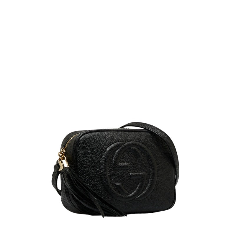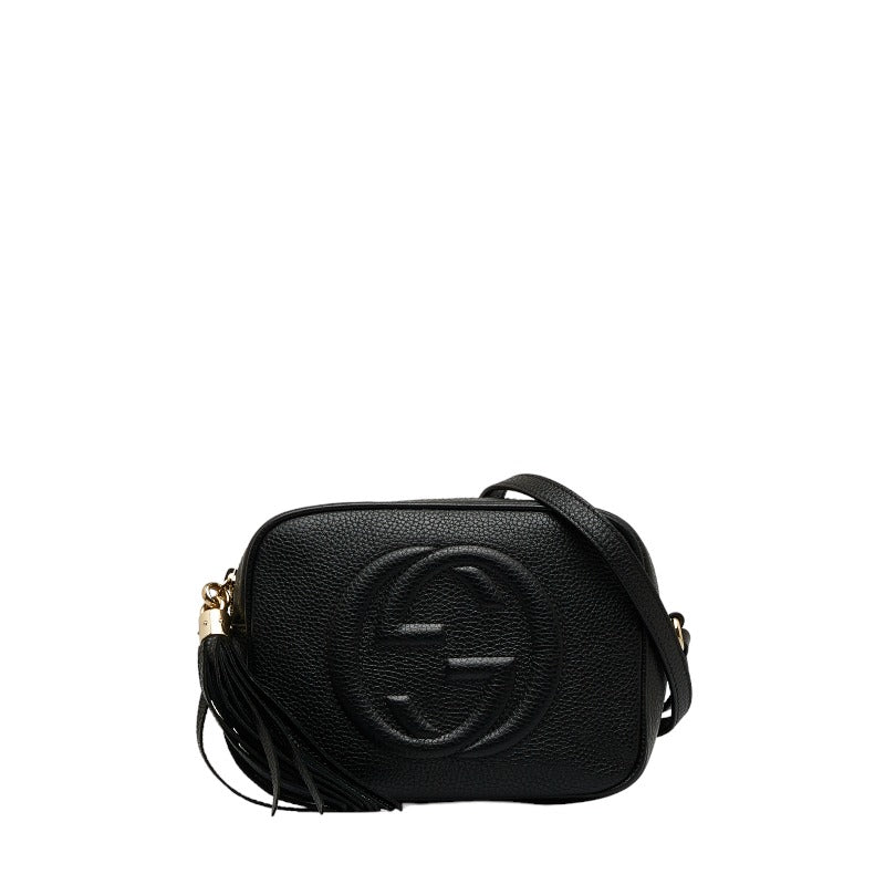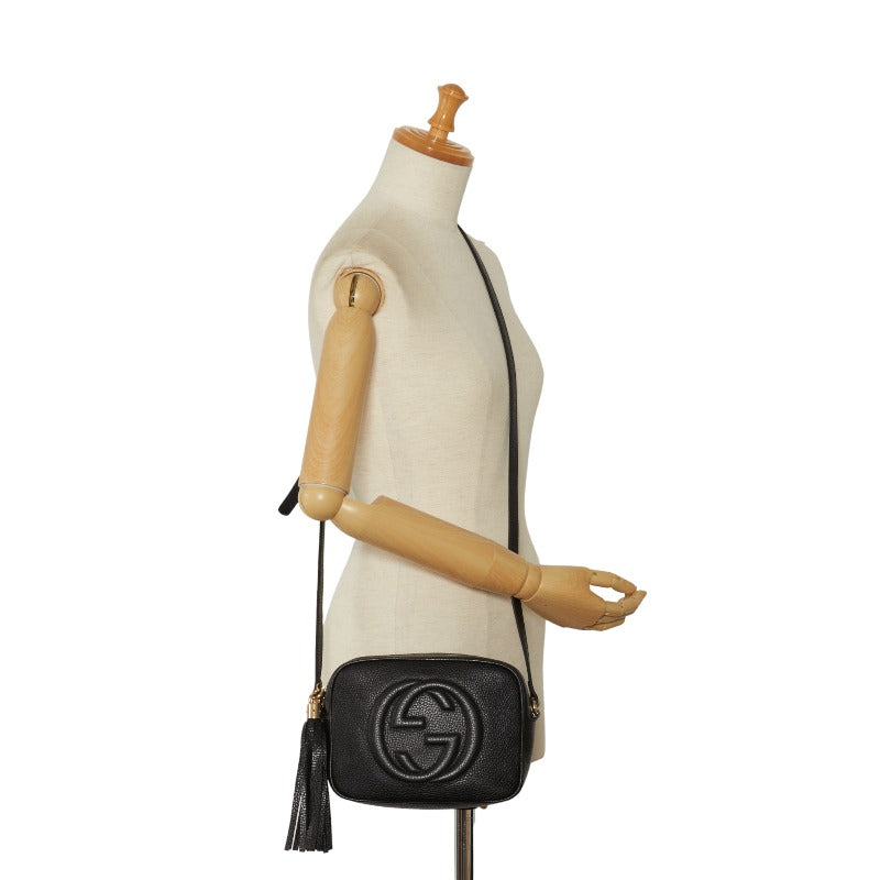 グッチ インターロッキングG ソーホー タッセル スモールディスコ 斜め掛け ショルダーバッグ 308364 ブラック レザー レディース GUCCI 【中古】