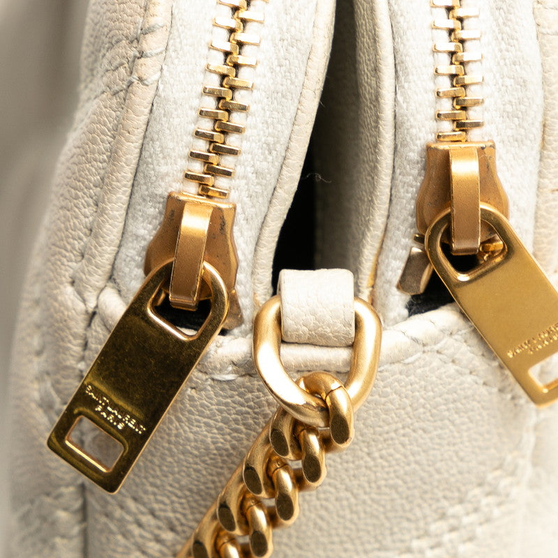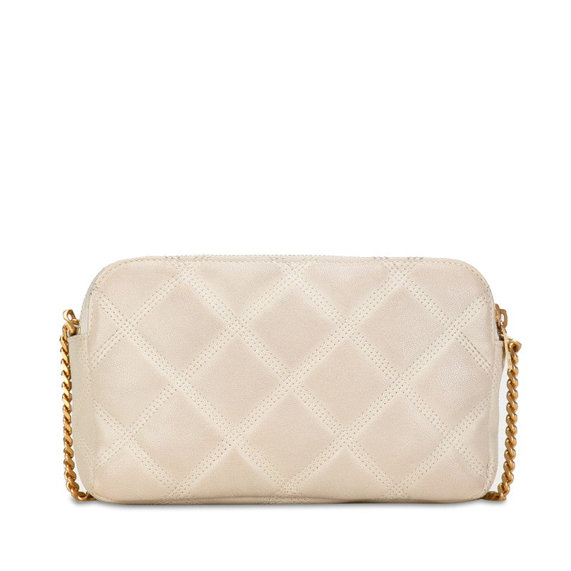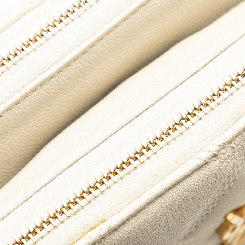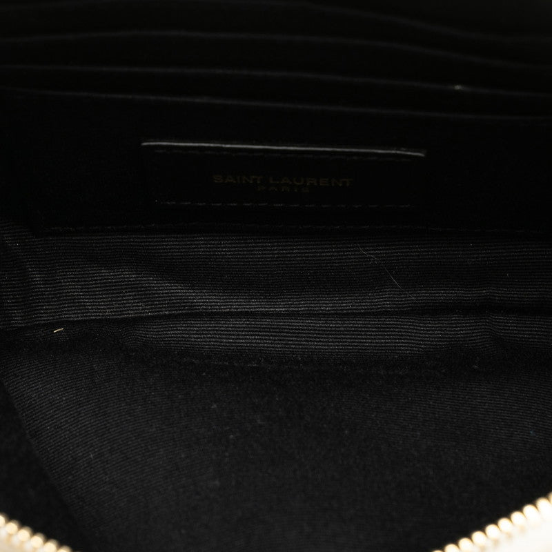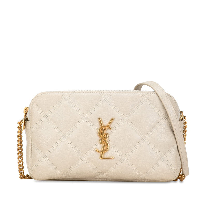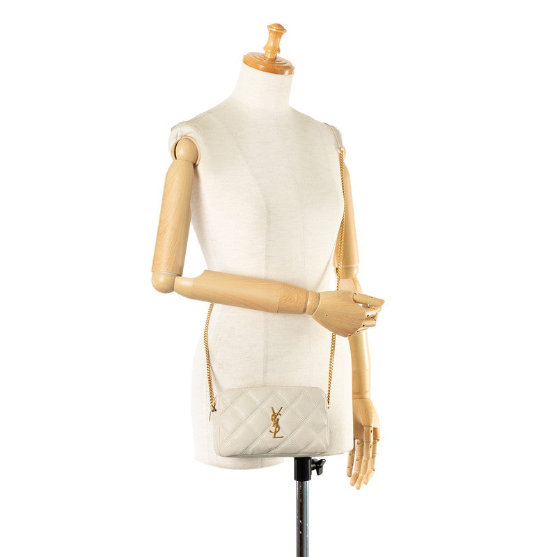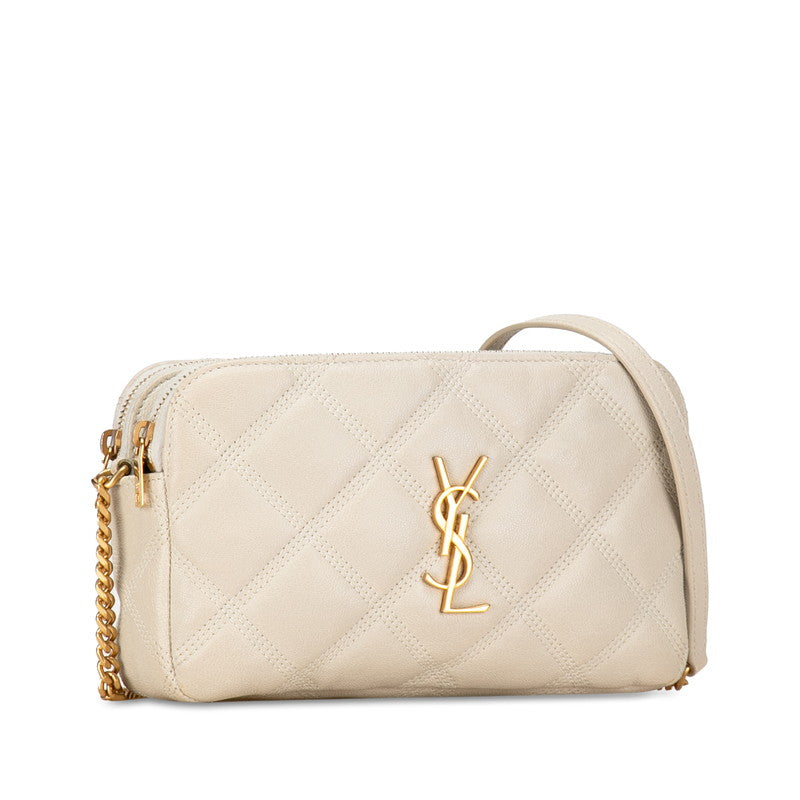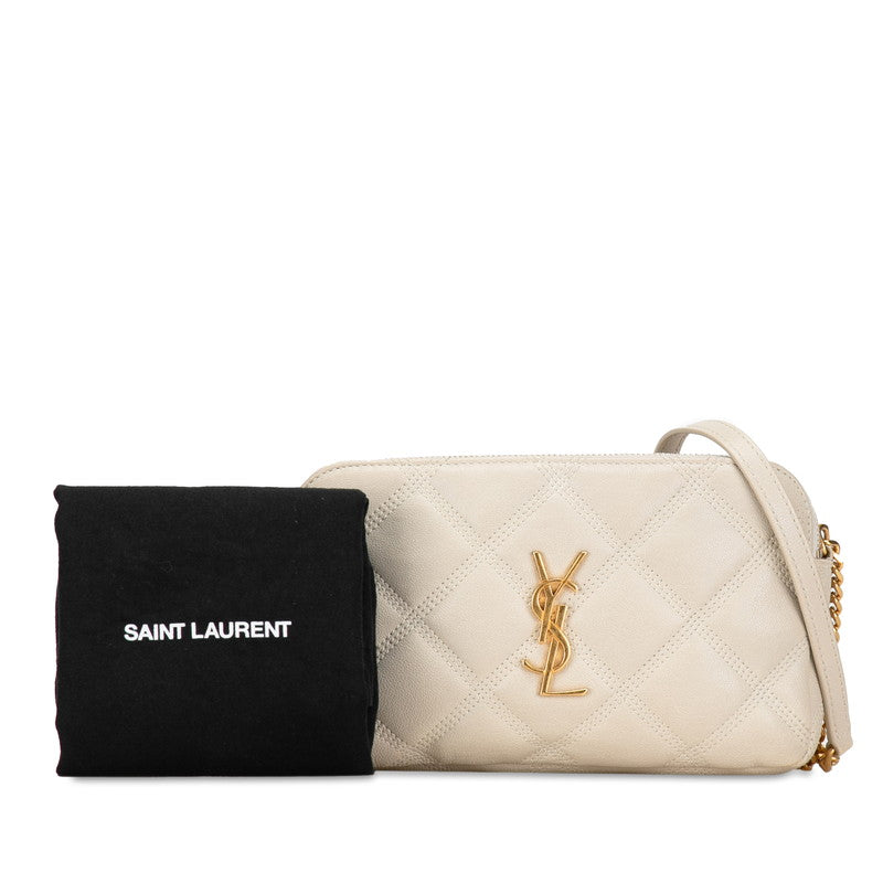サンローラン ベッキー YSLロゴ ダブルジップ 斜め掛け チェーン ショルダーバッグ GUE608941 ベージュ レザー レディース SAINT LAURENT 【中古】