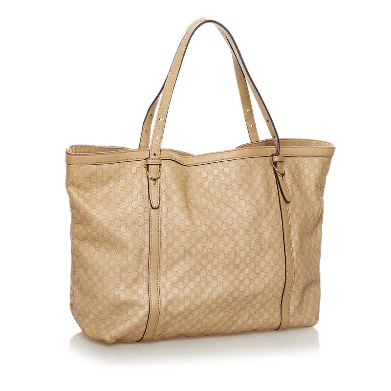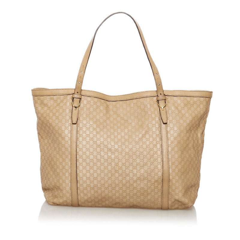 グッチ グッチマイクロシマ トートバッグ 309613 ベージュ レザー レディース GUCCI 【中古】
