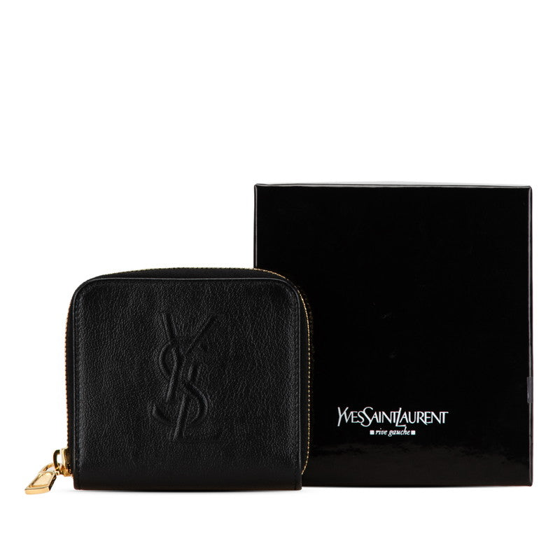 サンローラン ロゴ 二つ折り財布 ラウンドファウナー コンパクトウォレット ブラック レザー レディース SAINT LAURENT 【中古】