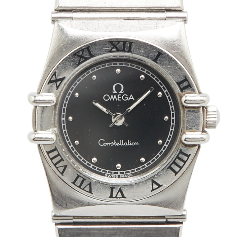 オメガ コンステレーション 腕時計 クオーツ ブラック文字盤 ステンレススチール レディース OMEGA 【中古】